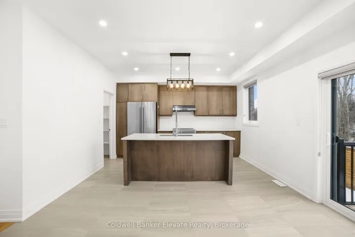 +"PublicRemarks": "Step into 42 Windtree Way, where modern luxury meets the serenity of small town charm. Located in Georgetown's coveted Trafalgar Square neighborhood, this like-new freehold townhome offers nearly 2,000 square feet of sun-drenched living space, perfectly positioned directly across from a brand-new park and the lush greenery of the Chris Walker Trail. You will find high end, modern finishes throughout the home, including quartz countertops, stainless steel appliances, upgraded pot lights, and Zebra blinds throughout. The ground level offers a versatile rec room with walk-out patio doors to the backyard, direct access to the garage, as well as a powder room. The main level offers a spacious open concept living area with large windows flooding the space with natural light, an upgraded eat-in kitchen with a large walk-in pantry, Kitchen Aid appliances, farmhouse sink and large center island. Step right onto the balcony, overlooking the backyard and greenspace - no neighbours at the back! Upstairs, you find a generous primary bedroom with a beautiful view of nature, a walk-in closet and 3 piece ensuite with extra large glass shower. The upper level is complete with two additional bedrooms, the main bathroom, convenient upper level laundry & linen closet. Beyond your front door, you are minutes from the historic charm of Downtown Main Street, the Georgetown Fairgrounds, the hospital, shopping and more. For commuters, seamless access to the 401 ensures the perfect balance between small-town tranquility and urban accessibility."