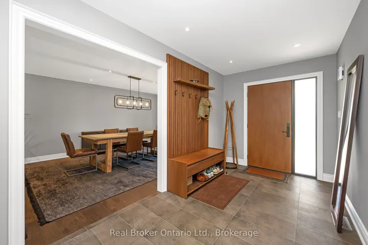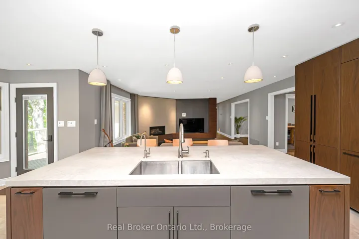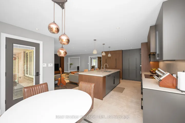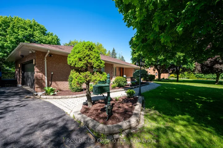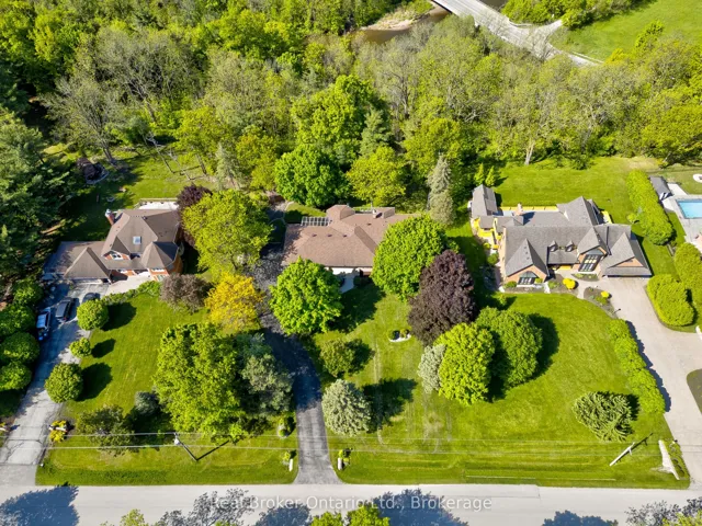+"PublicRemarks": "Welcome to paradise on the Credit River, where luxury, tranquility, and modern living converge. This rare ravine lot executive bungalow sits on nearly half an acre in the quiet community of Norval, offering a beautifully updated living space of approx. 2,300 sq. ft on the main floor alone. Just minutes from downtown Georgetown and major highways, the expansive driveway accommodates 10 vehicles, complemented by a spacious 2-car garage. Inside, you'll find new hardwood flooring, pot lights, and stylish fixtures throughout. The open-concept layout features a formal dining room and a flexible office/den that can be converted into a fourth bedroom. The stunning chef's kitchen boasts Caesarstone countertops, Porcelanosa finishes, a built-in Miele coffee machine, high-end built-in Dacor appliances, custom cabinetry with built-in lighting, and a large centre island overlooking the family room with a sleek new concrete plaster fireplace and walkout to a deck with serene river views. The elegant primary suite includes a feature wall with lighting, a walk-in closet, and a fully renovated 4-piece spa-inspired ensuite with a glass-enclosed shower and freestanding soaker tub. Two additional generously sized bedrooms and an updated main bath with modern feature wall tile and glass shower, along with main floor laundry with another conveniently located 2-piece bath, complete the main level. The partially finished basement offers exceptional additional space (over 2000 sqft) and potential. There is a rough in for an additional fireplace and with a garage door for workshop access or potential conversion to a walkout, plus a cavity in place for a future walk-down from the garage. With an extensive list of upgrades, including Fiber high speed internet, this home delivers the lifestyle you've always dreamed of!"