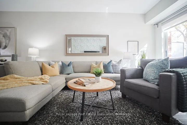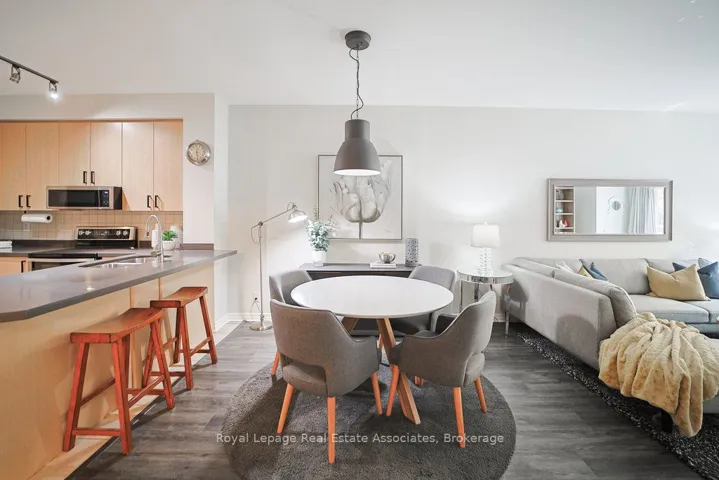 +"PublicRemarks": "Welcome to effortless main floor living in the heart of Port Credit. This beautifully designed 1 bedroom plus den suite offers 903 sq. ft. of stylish, open concept space and the rare luxury of a true walk out terrace, not a balcony. The walk out terrace is ideal for enjoying morning coffee, gardening, and summer BBQing while creating your own private outdoor retreat.The thoughtfully designed kitchen showcases sleek grey quartz countertops, ample prep space, and a seamless flow into the spacious living and dining area, ideal for entertaining or relaxing at home. The generous primary bedroom features a walk in closet with custom organizers, while the separate den provides versatile space for a home office, guest area, or cozy reading nook.A standout feature is the walk in laundry room, offering exceptional storage and functionality rarely found in condo living. Even the storage locker is conveniently located on the same ground level for easy access.Perfectly positioned just steps to the gym, lobby, and courtyard, this suite also offers added privacy with no neighbours on one side. Skip the elevator and step directly outside to enjoy the fresh lake air.Live just moments from the waterfront, marina, boutique shops, and vibrant restaurants that make Port Credit one of Mississauga's most desirable lakeside communities."