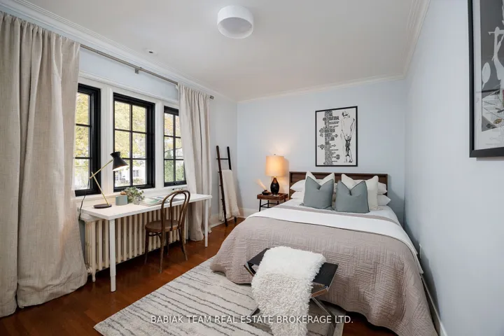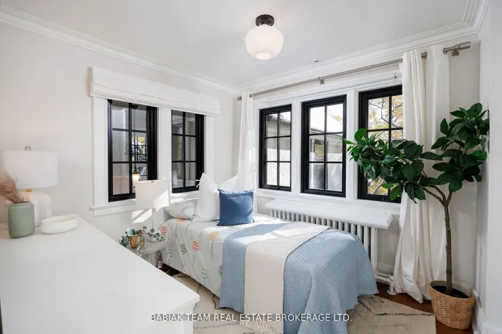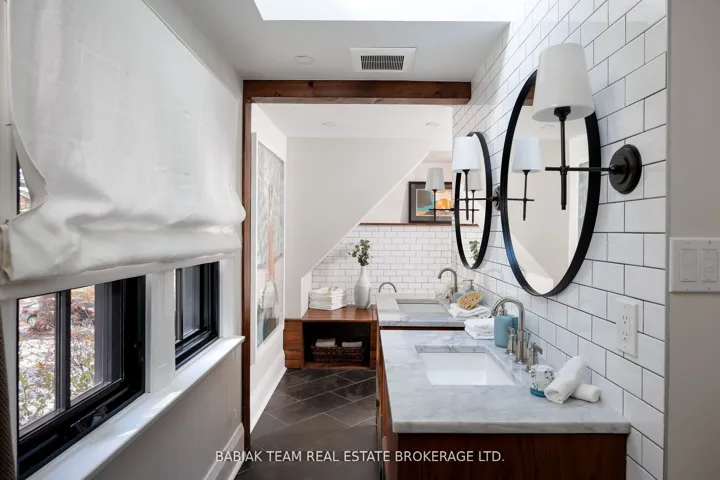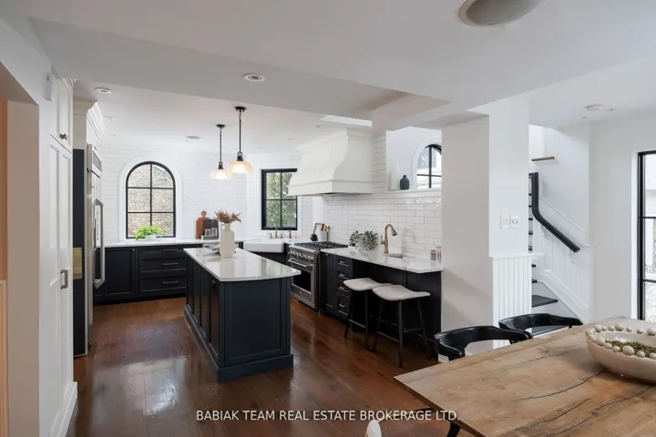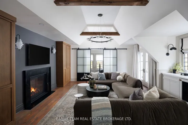 +"PublicRemarks": "Majestic 6 +1 bedroom residence, set on a spectacular 75' x 190' Muskoka-like ravine lot in the heart of prestigious Baby Point! This property of distinction offers the discerning buyer an impressive combination of features including grand principal rooms, a luxurious saltwater pool, an oversized garage with indoor parking for 3 cars, and an expansive show-stopping great room with meticulous architectural details. Featured in Style At Home, this extraordinary property has been carefully renovated and designed with great care and attention to detail. Centre hall foyer open to elegant living and dining rooms with sublime windows on multiple sides and treed views. Chef's kitchen with adjoining breakfast room and floor-to-ceiling sliding glass doors to resort-like outdoor living with covered stone patio with barbecue area, marvelous fiberglass pool with automatic cover and adjacent composite deck, lower patio with gas fire table, and private ravine views on all levels. Main floor office and powder room. Built above the garage but connected through the main house, the sensational great room designed by Brian Mc Court Designs boasts a vaulted ceiling, gas fireplace with soapstone mantel, impeccable custom millwork throughout with built-in office and wet bar, balcony overlooking ravine, delightful 3-piece bath, and separate gym. The second level includes a wonderful primary bedroom retreat with captivating ravine vistas, balcony, custom dressing room, and a hotel-inspired 5-piece spa bathroom. Three additional lofty bedrooms are located on this level, together with a 4-piece family bath. The third level includes two more bedrooms, two walk-in closets, and another full bathroom. Rounding out this exceptional offering the lower level includes a large recreation room, laundry and mudroom with custom cubbies, separate entry, seventh bedroom, lovely 3-piece bath, and storage room. Extensively landscaped with irrigation, fabulous plantings, and an abundance of parking."