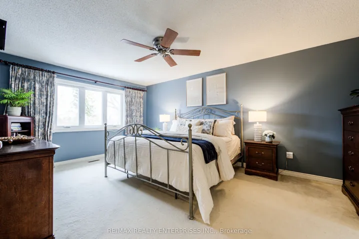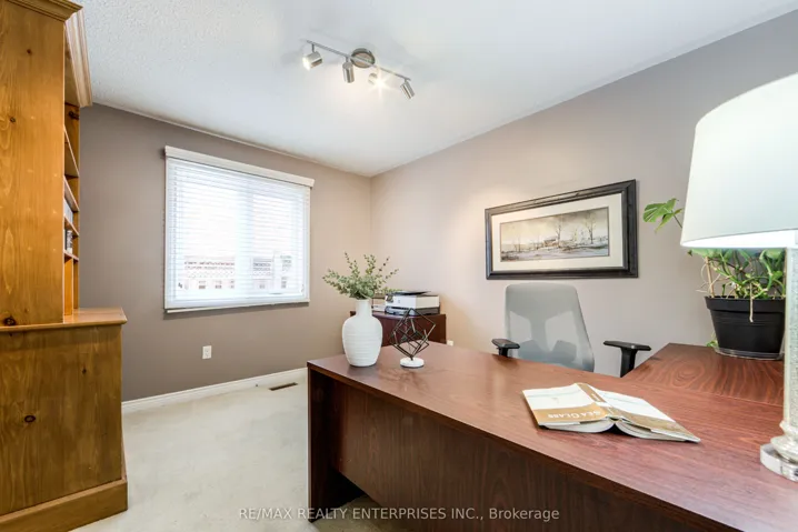 +"PublicRemarks": "What a gem! Luxurious, executive, sun-filled 4-bedroom family home located in the top-ranked school district of St. Luke, James W. Hill Public School, and Oakville Trafalgar High School. This bright, cherished family home sits on a quiet, children-friendly court and offers beautiful curb appeal, along with a premium backyard backing onto a park, and is perfectly designed for comfortable day-to-day living and family entertaining. The main level showcases a central hallway layout with soaring ceilings, two skylights, formal living and dining rooms, and an eat-in kitchen with a breakfast area and walk-out to the backyard. The southeast-facing family room with walk-out to the deck features a cozy wood-burning fireplace, and a main-floor office adds convenience for working from home. A mudroom with laundry provides a side entrance and access to the garage. Upstairs offers a spacious primary bedroom with a 4-piece ensuite and his-and-hers closets, plus three generously sized bedrooms and a 4-piece bathroom. The finished basement includes a recreation room, additional sitting area, a 2-piece washroom, and ample storage. The backyard is fully surrounded by greenery and flowering shrubs from spring through late fall, creating a private backyard sanctuary. Enjoy a deck with pergola and direct park access through a private gate - a rare and highly desirable feature. Conveniently located near QEW, 403, 407, Clarkson GO, shopping, and within walking distance to top-ranked schools."