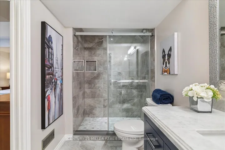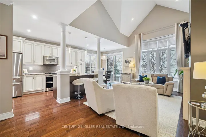 +"PublicRemarks": "Tucked within an exclusive enclave, this rare and sought-after bungaloft offers premium sunset rear exposure overlooking Bronte Creek Provincial Park. With over 3,900 sq. ft. of bright, open living space, this executive family home showcases hardwood floors, pot lights, and upgraded fixtures throughout. A formal dining room with cathedral ceilings flows into the stunning living room with soaring ceilings and a gas fireplace, seamlessly connected to the designer kitchen featuring two-tone cabinetry, stainless steel appliances, granite counters, island with breakfast bar, backsplash, valance lighting, and walkout to a private yard with lush greenery and exposed aggregate patio. The main floor primary suite offers a walk-in closet, two-way fireplace, and spa-like ensuite with double sinks, soaker tub, and glass shower. A versatile second main-level bedroom or home office features semi-ensuite access to an updated 3-piece bathroom with heated floors, while the convenient main floor laundry enhances everyday functionality. Upstairs, a bright loft with skylight overlooks the living and dining areas below, along with an additional bedroom and a well-appointed 4-piece bath. The professionally finished lower level offers a spacious rec room with a separate family room area featuring an electric fireplace, a breakfast area, and a dedicated gym space, along with two additional bedrooms, a 4-piece bath, and a separate storage room. Double garage with inside entry, double driveway and exposed aggregate walkway. Close to hiking and biking trails, parks, schools, shopping. Minutes to Bronte GO Station, near Oakville Trafalgar Hospital and easy access to QEW and 407. Furnace (2020), and owned water heater."