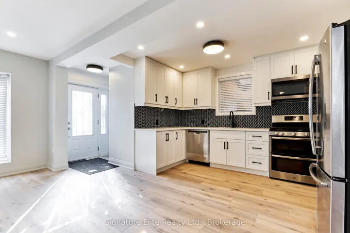+"PublicRemarks": "Fully Renovated 4 Bed 2 Bath Home W/ 2 Car Parking! Gleaming Hardwood Flooring & Modern Pot Lights. Natural Light Floods Open Concept Main Floor W/ Inviting Living Room W/ Bay Window. Modern Kitchen W/ Stainless Steel Appliances. Main Floor 2 Bedrooms W/ Walk-Out To Yard & 2Pc Bathroom. Upper Level Laundry Room For Convenience. Oversized Upper Level 2 Bedrooms Boast Vaulted Ceilings, Pot Lights & Skylights. Shared Access To Large Backyard Space Including Covered Patio. Walking Distance To Multiple Schools, Parks Like Upwood Greenbelt, Shopping & Groceries (No Frills), Tim Hortons, & Walk To Ttc Buses & Weston Up Express (Be Downtown Or Airport In 15 Mins). Close To Restaurants & Shops!"