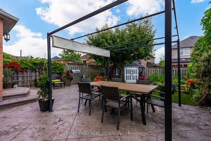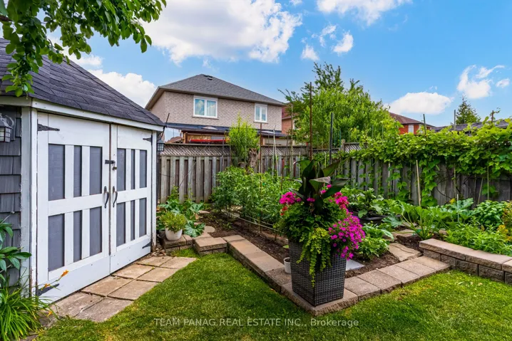 +"PublicRemarks": "Absolutely stunning detached home featuring 3 bedrooms and 3 washrooms, including a finished basement. Step inside to elegant French doors, a welcoming front porch, and exceptional curb appeal enhanced by patterned concrete and meticulous landscaping. The backyard offers a generous 14' x 29' patio surrounded by a landscaped garden with a vegetable patch, apple and plum trees, vines, and a spice garden. An insulated tool shed is equipped with electrical outlets, indoor/outdoor lighting, hot and cold water access, and a natural gas hookup for BBQ. Additional highlights include an insulated garage, new windows throughout, lifetime-warranty sliding doors, new front doors (2012), a roof (2020), a cold cellar, pot lights, porcelain tile in the entryway, new closet doors, a new staircase with iron railing, 4" oak hardwood floors on the main level, smooth ceilings, crown moulding, and a natural stone cladding feature wall with an electric fireplace, natural gas hookup, and centralized outlets. Includes upgraded main-floor powder room. The second floor, renovated in (2022) includes (6" engineered hardwood ) includes new bathrooms with porcelain tiles, quartz countertops, updated plumbing, a glass standing shower, and a free-standing soaker tub. The basement is finished with smooth ceilings, pot lights, sound system wiring, a wet bar. and upgraded baseboards on the main and window coverings, granite kitchen countertops, and porcelain kitchen flooring, enhancing the home's elegance. Appliances include an LG fridge (2021), LG stove (2022), Whirlpool dishwasher (2021), washer & dryer (2021), an additional stove in the basement with a 220V outlet, a fridge in the garage, and AC (2022). Garage also includes a new remote opener. FENCED BACKYARD. Located within walking distance to Trinity Common Plaza, public transit school recreational centers, places of worship, and with easy access to Hwy 410."