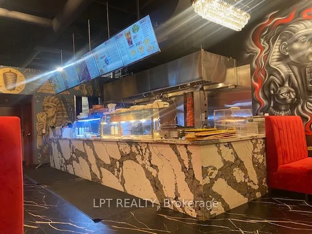 +"PublicRemarks": "Opportunity to start your own food and restaurant non franchise business in the new build Shawarma King with high end impressing finishing, sale include all the new chattels and equipment, decent space 40 to 50 seats, rare to find 2 luxe finishing washrooms gross rent $6700 include TMI., LCBO licence, high sales with the known famous middle east cuisine, a lot of parking in the booming plaza."