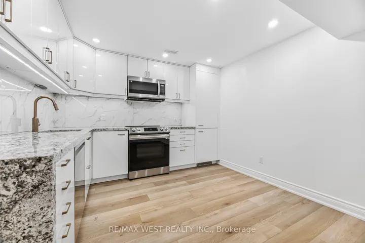 +"PublicRemarks": "Welcome to this beautifully finished executive lower-level suite in sought-after Churchill Meadows. With its private exterior entrance and thoughtfully designed layout, this sun-filled one-bedroom residence offers refined, modern living.The open-concept living space features wide-plank flooring, pot lighting throughout, and a sleek contemporary kitchen complete with full-height cabinetry, granite countertops, marble-inspired backsplash, stainless steel appliances, and under-cabinet lighting. The design is both sophisticated and functional - ideal for everyday living or hosting guests.Sliding barn doors add architectural interest while creating separation to the spacious bedroom retreat. A built-in office nook offers the perfect work-from-home solution, and the oversized walk-in closet provides exceptional storage rarely found in rental suites.The spa-inspired bathroom showcases a glass-enclosed shower with premium fixtures, modern vanity, marble-look tile, and a convenient stacked washer and dryer for private in-suite laundry.All utilities are included - heat, hydro, water, cable, and internet - along with one dedicated parking space, offering true turnkey convenience.Located in the heart of Churchill Meadows, steps to shopping, transit, parks, and everyday amenities. An exceptional opportunity for a discerning professional seeking privacy, quality finishes, and an elevated rental experience."