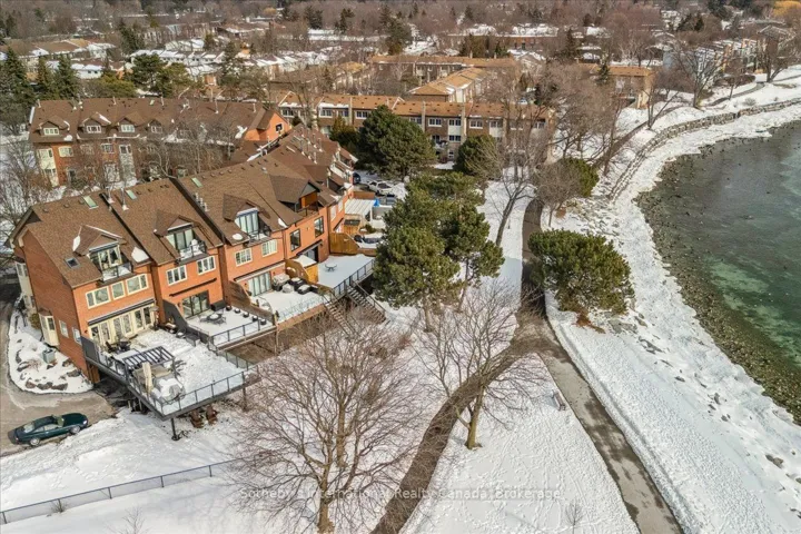 +"PublicRemarks": "Rarely offered, true lakefront freehold townhouse in prestigious Bronte with unobstructed, panoramic views of Lake Ontario. One of only a select few waterfront residences in this exclusive enclave and seldom available, this exceptional townhouse is offered for the first time and has been professionally renovated from the ground up, representing a complete rebuild with all-new systems, infrastructure, and bespoke designer finishes throughout. Thoughtfully reimagined with refined architectural detail, the residence showcases a dramatic custom staircase, sun-filled open-concept living spaces, and expansive windows that frame breathtaking lake views from multiple levels. Seamless indoor-outdoor flow creates an unparalleled waterfront living experience rarely available in townhouse ownership. The designer kitchen features custom cabinetry and premium appliances, including a high-end stove with oven, range hood, microwave, dishwasher, and refrigerator, curated for elevated everyday living and elegant entertaining. Engineered hardwood flooring extends throughout, complemented by heated bathroom floors and three fireplaces, including two gas fireplaces and an electric fireplace in the private primary suite. The spa-inspired primary ensuite features a steam shower. The third bedroom offers flexibility to be a family room (presently used as one). Basement office/den has multiple uses. Two private waterfront decks, including an impressive 40-ft deck(approx) on the main and a fully covered one on the third floor, provide exceptional outdoor living and spectacular sunset views. Located in one of Oakville's most coveted waterfront communities with private tennis courts, just steps to Bronte Harbour, marina, waterfront trails, fine dining, and boutique shops. A truly rare turnkey lakefront offering."