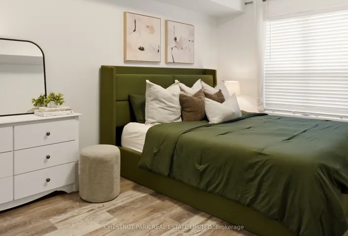 +"PublicRemarks": "Turn-key Mattamy built 2 bedroom, 2 bathroom unit in the desirable Willmott neighbourhood, offering 865 sq ft of well-designed living space. Upon entering, you're greeted by a bright and inviting open-concept layout, complemented by a neutral palette and new flooring throughout. The kitchen features shaker-style cabinetry, stone countertops, stainless steel appliances (2023), and a breakfast bar with seating for two, making it both functional and welcoming. Bright, oversized windows fill the home with natural light, and a walkout from the living room leads to a covered porch. The spacious primary bedroom offers plenty of room and comfortably accommodates a king-size bed while still leaving space for a work-from-home setup, if desired. The private ensuite has been redesigned with an upgraded vanity featuring stone countertops and a glass shower enclosure. A second bedroom and an additional upgraded bathroom complete the space. Additional features include in-suite laundry, underground parking, and a locker. Ideally located in the vibrant Hawthorne Village of Milton's Willmott neighbourhood, just steps to Milton Community Park with a playground, green space, and seasonal splash pad. Within easy walking distance to Milton Community Sports Park and the Milton Sports Centre, offering arenas, a pool, courts, and trails. Nearby amenities also include the Milton Leisure Centre and Sherwood Community Centre-perfect for an active lifestyle and community living."