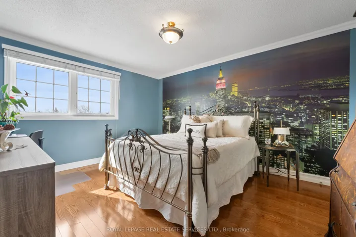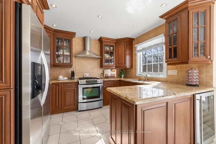 +"PublicRemarks": "Welcome to Creekside Dr in the prestigious Wedgewood Creek community. Situated on a premium ravine lot beside a catwalk, this beautifully renovated detached home offers over 4,000 sqft of finished living space. Enjoy breathtaking unobstructed views of Valleybrook Park from your living room. A walk-out basement provides seamless access to the backyard for exceptional indoor-outdoor living. The bright main level has a welcoming foyer with double closet, formal living and dining rooms with bay windows and new hardwood flooring. A spacious eat-in kitchen features granite countertops, a peninsula island, custom cabinetry, and stainless steel appliances. Off the kitchen, a generous balcony with composite decking (2001) overlooks the professionally landscaped yard with interlock walkway and back garden - a perfect space to entertain or enjoy the tranquil ravine setting. Equipped with hydro, the garden shed is ready for projects or outdoor work. The adjoining family room offers a cozy gas fireplace and peaceful backyard views. A private office, convenient laundry room with garage and exterior access and a powder room complete this level. No compromises here - a full two-car garage ensures ample space for vehicles and storage. Upstairs, the large primary retreat comfortably fits a king sized bed and features a walk-in closet. Unwind after a long day in the 5-piece ensuite with an air bath tub, heated towel rack and walk-in shower. Three additional well-sized bedrooms, two with walk-in closets and a full main bath accommodates a family. New hardwood stairs and railings add elegance throughout. The finished walk-out basement with direct patio access to the backyard includes a large rec room with gas fireplace, second kitchen, bedroom, and 3-piece bath-perfect for extended family. Close to parks, trails, schools, shops, restaurants, transit and recreation facilities, this home offers convenience in one of Oakville's most sought-after neighbourhoods."