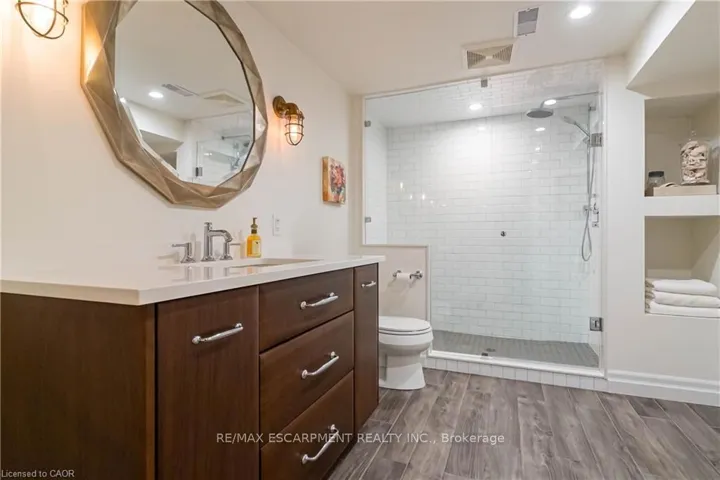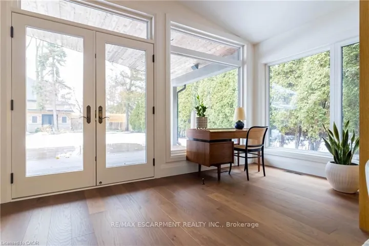 +"PublicRemarks": "With over 2000 sq ft of above ground living space, this exquisite residence in Aldershot's highly sought-after, La Salle Park neighbourhood, offers sophisticated design & timeless appeal. Masterfully crafted by renowned Toronto interior designer, Lisa Lev, & featured in The National Park, this home blends warm organic materials with modern elegance. At the heart of the home lies the open-concept great room & kitchen, designed for effortless everyday living &sophisticated entertaining. The expansive great room features soaring vaulted ceilings, rich wood-tone paneling, custom millwork & seamless built-ins that deliver architectural depth & generous storage. A striking vertical wood slatwall introduces airy sophistication while subtly defining spaces. Beautiful french doors frame stunning views of the private rear yard & provide direct access to the sparkling in-ground pool & serene outdoor areas. The adjacent kitchen is equipped with premium Miele appliances, wood-tone cabinetry paired with crisp white accents, custom pantry units &a luxurious quartz island with waterfall edges. A convenient side door opens to a built-in gas BBQ, enhancing seamless indoor-outdoor living. Thoughtfully positioned on the main floor for privacy, the primary suite includes a luxurious5-piece ensuite & spacious custom walk-in closet. A separate, sun-drenched formal living room centers on a gas fireplace, offering a cozy, intimate retreat. The formal dining room & powder room complete the main floor. The fully finished basement adds exceptional versatility with two bonus rooms (ideal as bedrooms, offices, or hobby spaces), 3-piece bathroom, dedicated laundry room, & ample storage. Outside, the professionally landscaped rear oasis features the in-ground pool, composite decking, low-maintenance Astro Turf, pool shed, & detached garage & parking for 5+cars. This turnkey masterpiece combines premium finishes, designer pedigree & a prime location near parks, trails &the Lake."