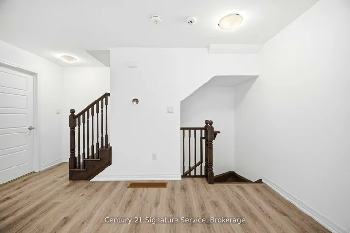 +"PublicRemarks": "Newly built in North Oakville, this stylish freehold townhome offers 3 bedrooms and 3 bathrooms with beautifully upgraded living space perfect for young families, couples, and first-time buyers seeking modern comfort in a prime location. The home features floating engineered hardwood floors throughout (upper level 2026) and an open-concept layout with an eat-in kitchen complete with stainless steel appliances, granite countertops, a newly installed backsplash, and a center breakfast bar ideal for entertaining. Step out to a spacious balcony for effortless outdoor enjoyment. The entire home was freshly painted (2026). Upstairs, the private primary suite includes a walk-in closet and 4pc ensuite, complemented by two additional bedrooms and a full bathroom. Convenient garage access from the main level adds everyday practicality. Located steps from the Sixteen Mile Creek Trail and minutes to Bronte Creek Provincial Park, Glen Abbey Golf Club, Oakville Place, and the GO Station. This is modern Oakville living at its best just move in and enjoy."
