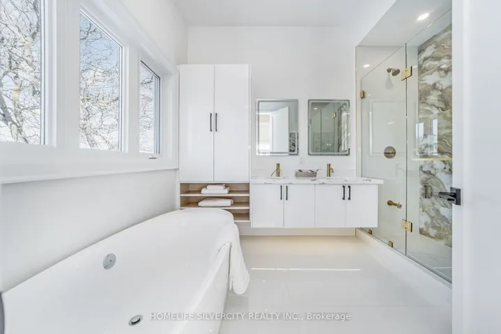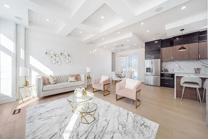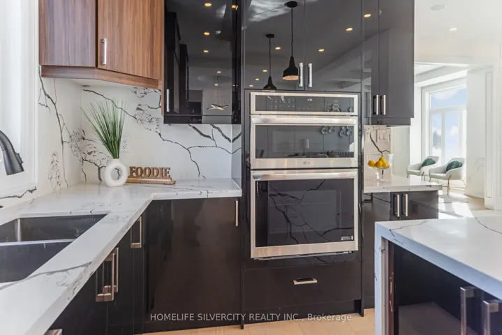 +"PublicRemarks": "This modern two-storey home offers striking curb appeal with a modern stone and stucco exterior, warm wood accents, and a grand columned entrance. The elevated entry and wide driveway enhance its impressive presence, showcasing quality craftsmanship and thoughtful contemporary design. Inside, the home opens to a bright layout with high soaring ceilings, recessed lighting, and large windows that flood the space with natural light. Light hardwood floors and elegant wall paneling add warmth and sophistication. A statement staircase with detailed paneling, vertical accent lighting, wood railings, and a modern chandelier creates a stunning focal point. The chef-inspired kitchen features sleek two-tone cabinetry, quartz countertops with waterfall edges, and an oversized island with stylish pendant lighting. Built-in stainless-steel appliances and glossy finishes make this space both functional and refined. The adjoining family room offers a coffered ceiling with pot lights, expansive windows, and a linear fireplace set against a contemporary feature wall. The dining area is finished with paneled walls and large sliding doors for seamless indoor-outdoor flow. A main floor bedroom with a full bath provides flexibility for guests or extended family. Upstairs, the primary suite includes a tray ceiling, accent wall, fireplace, spa-like ensuite, and covered balcony. All additional bedrooms feature spa like baths. The finished basement offers open recreation space, a modern washroom, and large windows, while the backyard and upper balcony provide generous outdoor living. The front and backyard feature stamped & gravel driveway in soft grey tones, creating a clean and modern space around the home. The natural veining and defined borders add a refined finish while offering durability and low maintenance for outdoor living."