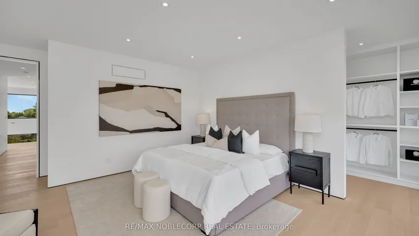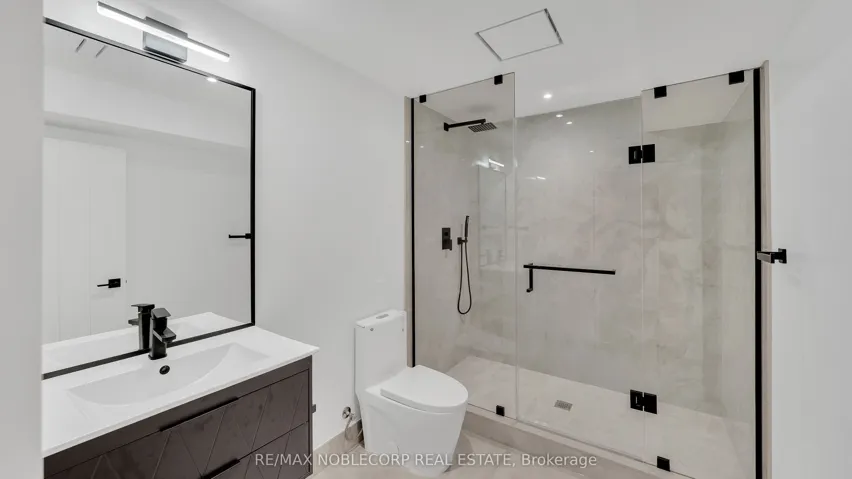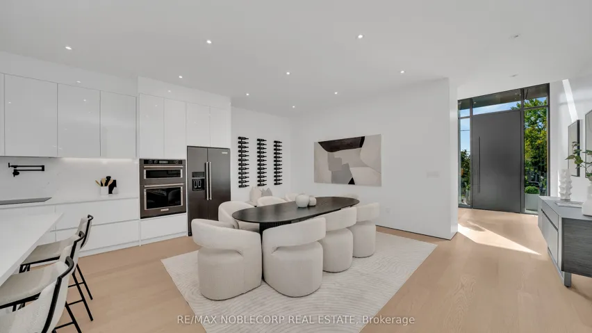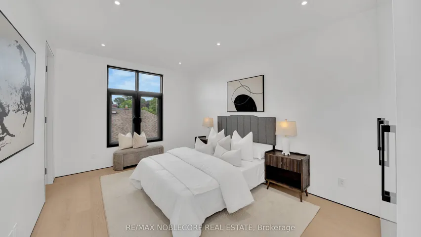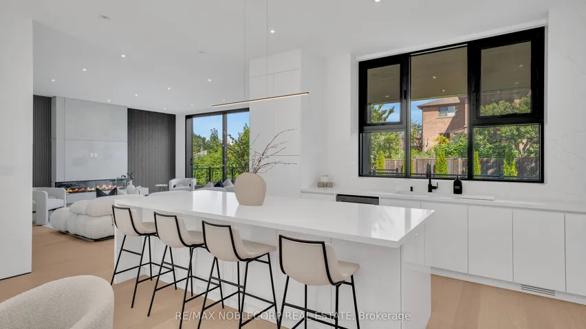 +"PublicRemarks": "A modern contemporary masterpiece at 16 Deevale Rd, this custom-built residence offers over 4,500 sq. ft. of livable space with 4+2 bedrooms and 5 bathrooms. Designed with soaring ceilings and floor-to-ceiling windows, the home features an expansive rear wall of glass with oversized sliding doors opening to a spacious composite patio. The sleek interior is defined by white oak floors, seamless paneled walls, and a floating staircase with glass railing, while the open-concept main level showcases a 3-sided fireplace and a chef's kitchen with a 10' quartz waterfall island, quartz backsplash, premium appliances, pot filler, wine wall, and full-height cabinetry with valance lighting. Upstairs, the primary suite offers a custom walk-in closet and a 5-pc spa-inspired ensuite with heated floors, rainfall shower, and double vanity, while additional oversized bedrooms feature large windows, built-ins, and ensuite access. The finished lower level with separate entrance provides flex rec or in-law potential with a full kitchen, dining, living, and 2 bedrooms. Outdoors, enjoy a spacious backyard with lounging cabana and cedar trees, while the front highlights illuminated flagstone steps. Additional features include ACM panels and stucco exterior, oversized aluminum windows, interlock driveway with total parking for six, a fluted-panel 2-car garage with EV charging rough-in, solid-core doors, and a full security system-an exceptional modern residence blending design, luxury, and function."