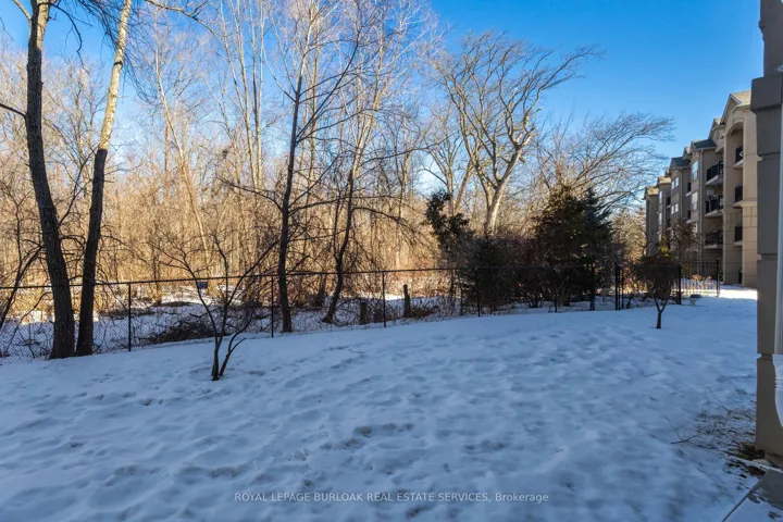 +"PublicRemarks": "Spacious one-bedroom plus den, Hampton Model, in the highly desirable Uptown Orchard Condominium, offering over 800 sq. ft. of thoughtfully designed living space. This ground-floor suite features a walkout to a private patio backing onto a protected, treed ravine, the perfect setting for peaceful morning coffee or evening relaxation. Open-concept living and dining area, is complete with an electric fireplace, and flows seamlessly into the bright eat-in kitchen featuring ample cabinetry and generous counter space. The primary bedroom includes a double closet and a charming alcove ideal for enjoying the ravine views. The versatile den, complete with a walk-in closet, is ideal for a home office or guest bedroom. A four-piece bathroom conveniently incorporates an in-suite laundry. This suite includes one underground parking space and a storage locker. The clubhouse, just steps from your door, offers exceptional amenities including a gym, sauna, and party room with kitchen. Ample visitor parking is also available. Ideally located within walking distance to grocery stores, shops, restaurants, daycare, fitness centres, and public transit. Situated in North Burlington's Orchard community, with easy access to the GO Station, QEW, 407, and Bronte Park. Urban convenience meets tranquil ravine living."