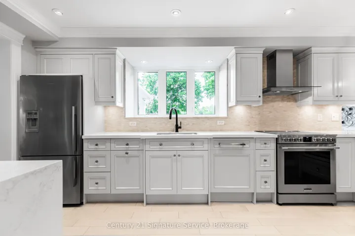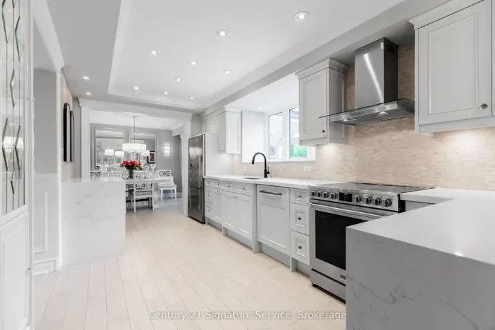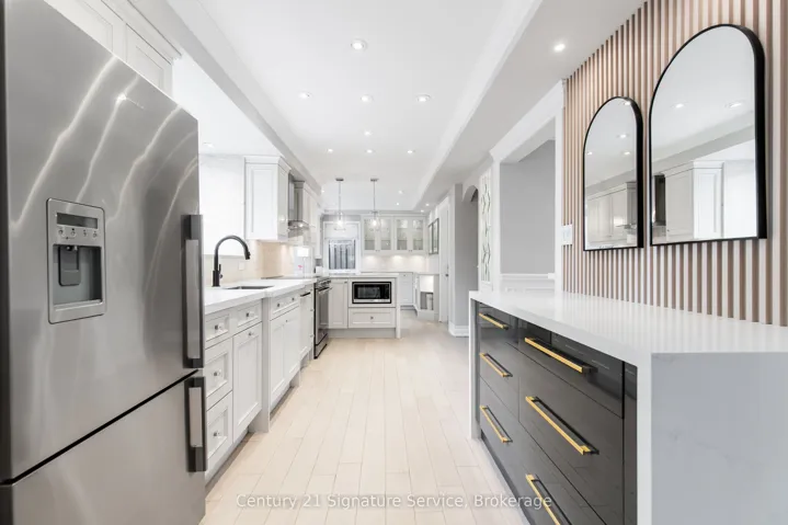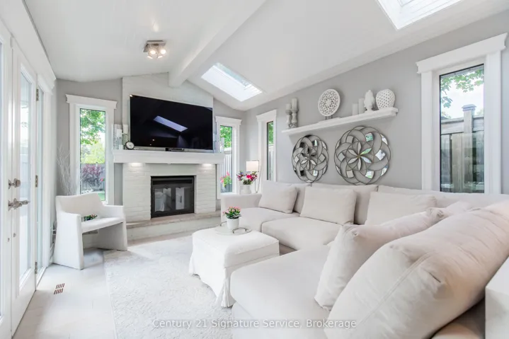 +"PublicRemarks": "Welcome to 16 Ferndale Cres, nestled in one of Brampton's most sought-after communities - Peel Village. This exceptional 4+1 bed, 3-bath executive home showcases true pride of ownership. Fully renovated top to bottom and enhanced with a stunning custom addition featuring upscale finishes and potlights throughout. Step into a bright, open concept living and dining area with seamless flow to the backyard oasis - ideal for everyday living and effortless entertaining. The chef's kitchen impresses with waterfall quartz countertops, modern appliances, under-mount lighting, and convenient interior access to the garage. The garage is thoughtfully outfitted with built-in cabinetry and a second fridge, creating additional pantry and storage space. The family room boasts a soaring cathedral ceiling, two skylights, a wood-burning fireplace, and a walkout to your private backyard retreat. Outdoors, professionally landscaped grounds are graced by breathtaking sunset views creating the heart of a truly unique indoor/outdoor lifestyle. Enjoy the 400 SF composite deck with vaulted covered roof, integrated lighting, and four skylights - perfect for dining and gathering under the stars. Additional features include a gas fire display, new interlock walkways, soffit and garden lighting, inground sprinklers, and spacious Keter shed. Upstairs are four generously scaled bedrooms and two recently updated baths. The primary suite is a true sanctuary, offering 11ft cathedral ceiling, a gas fireplace, and a spa-inspired ensuite featuring quartz finishes and heated floors. The finished basement expands your living space with a 5th bedroom, living/rec room w/ large egress windows - ideal for guests, along with a 2-pc bath, laundry area, ample storage, and a cold room. Set on a quiet crescent with a backyard offering privacy and open views, this meticulously upgraded home delivers tranquility, convenience, and the perfect setting for a vibrant outdoor lifestyle in a family-friendly neighbourhood."
