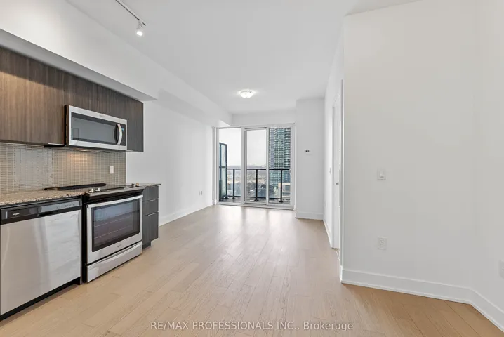 +"PublicRemarks": "Welcome to Eau Du Soleil Sky Tower in Humber Bay Shores, in the heart of Etobicoke's vibrant waterfront community. This beautifully maintained 1 Bedroom + Tech suite offers east-facing city and lake views, soaring 9-foot ceilings and floor-to-ceiling windows that fill the space with natural light. Freshly painted and professionally cleaned, this move-in ready unit features a modern open-concept layout with wide-plank engineered hardwood flooring throughout. This superb unit includes a chef-inspired kitchen with stone countertops, stainless steel appliances and a mini glass subway tile backsplash, a spacious living area, ideal for both everyday living and entertaining, with a walk-out to a large 4'7" x 19'10" balcony overlooking the city and lake, a generous bedroom with a double closet and a second walk-out to the balcony, a modern 4-piece bathroom and convenient ensuite laundry. One underground parking space is included! Residents enjoy exceptional resort-style amenities including a 24-hour concierge, indoor saltwater pool, fully equipped fitness centre, yoga and pilates studio, sauna, theatre room, games and party rooms, guest suites, rooftop deck and outdoor lounge with BBQs and cabanas and more! Located in the highly sought-after Humber Bay Shores neighbourhood, steps to boutique shopping, cafes and popular restaurants including La Vecchia, Firkin on Bay, Eden Trattoria, Huevos Gourmet and Birds & Beans Cafe. Enjoy nearby Jean Augustine Park, the scenic Martin Goodman Trail along the waterfront and the popular HBSCA seasonal Farmers' Market held on Saturdays. Westlake Village is directly across the street with Metro, LCBO, Starbucks and everyday conveniences. TTC at your doorstep, easy access to Mimico GO Station and the Gardiner Expressway for commuting downtown. Experience the best of lakeside city living in one of Etobicoke's most dynamic waterfront communities!"