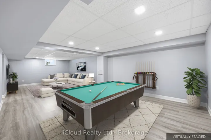 +"PublicRemarks": "Beautiful fully bricked 2-storey home situated on a quiet cul-de-sac, featuring 4 bedrooms and2.5 bathrooms. Modern kitchen with custom backsplash, waterfall island, and quartz countertopsin the kitchen and all bathrooms. Functional layout with separate living, dining, and familyrooms. Highlights include 9-ft ceilings on the main floor, fireplace, pot lights, oak staircasewith iron spindles, and hardwood flooring on the main level and second-floor hallway.Double-door entrance, double-car garage, and a rare 4-car driveway with no sidewalk. Unfinishedlookout basement offers excellent future potential. Must-see home."