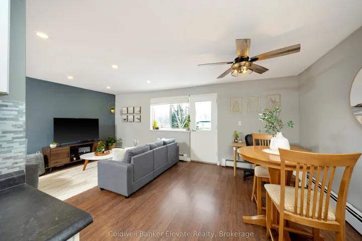 +"PublicRemarks": "Cute as a button and completely move-in ready, this 1 bedroom, 1 bathroom condo is ideally located in one of the best spots in town, just steps to downtown Georgetown, shops, and the local Farmers' Market. The bright and functional layout begins with a welcoming front foyer featuring ceramic tile flooring, a flush mount light, and a double mirrored closet offering ample storage. The living room showcases laminate flooring, recessed pot lights, a sunny south facing window, and a walk out to the balcony with open south facing views. The open concept dining area continues the laminate flooring, features a ceiling fan with integrated light, and shares access to the balcony, creating a seamless indoor outdoor living experience. The kitchen offers ceramic flooring, a mosaic tile backsplash, laminate countertops, a double stainless-steel sink, track lighting, and an open concept design ideal for everyday living. The spacious primary bedroom includes laminate flooring and a south facing window that fills the room with natural light. The renovated four-piece bathroom features a modern vanity with sink, updated vanity lighting, and a tub and shower combination with sliding glass doors. Ensuite laundry adds everyday convenience with a Bosch front load washer and dryer included. Additional highlights include one exclusive parking space, visitor parking, bike storage and a private storage locker located in the building. Maintenance fees are all inclusive, covering hydro, heat, and water. Ideally located close to schools, parks, and minutes to GO, this is the perfect opportunity for first time home buyers."
