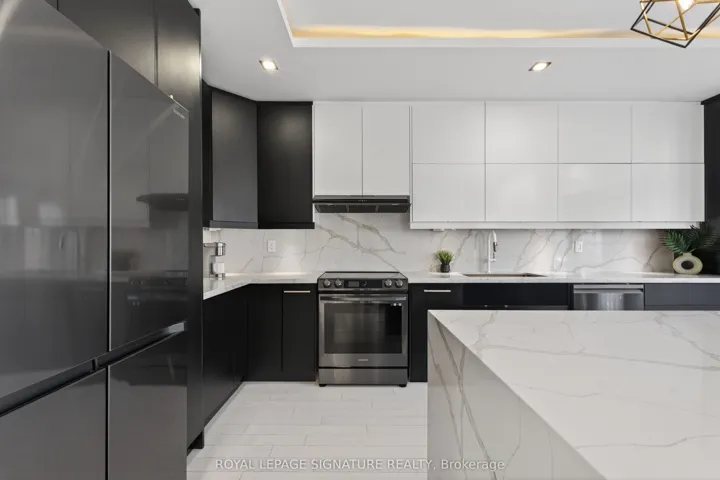 +"PublicRemarks": "Completely reimagined and meticulously renovated to the highest standards, this exceptional two-storey home stands apart with premium finishes and striking design throughout. A stunning brick and stone façade and lifetime metal roof create impressive curb appeal. Inside, custom engineered hardwood flooring flows throughout the open concept main floor, complemented by multi-tiered tray ceilings with integrated cove LED lighting creating a warm and luxurious ambiance. A stunning two-way fireplace elegantly separates the dining room from the family room. The designer kitchen is a true showpiece, featuring custom cabinetry, a spectacular waterfall centre island, and quartz countertops with a seamless quartz backsplash. The breathtaking living room offers majestic 14-ft ceilings, massive windows, and a custom floor-to-ceiling feature with a sleek, modern fireplace. Ascending to the second floor, you'll be impressed by the striking quartz staircase with offset glass railings, an architectural feature that adds a modern gallery-like feel. The primary retreat is a private sanctuary, complete with wall-to-wall custom closets with built-in organizers and a spa-inspired ensuite featuring a freestanding soaking tub, smart toilet, custom vanity, and curbless glass shower. Three additional spacious bedrooms offer large windows and ample closet space, complemented by a stylish shared bath with quartz vanity, smart toilet, and curbless glass shower. The basement continues the home's theme of refined luxury with a bright, main-floor feel thanks to large windows and walk-out to the backyard patio! This level features a spacious rec room with a sleek fireplace, a second full kitchen with quartz counters, a full bathroom with a standing shower with body spray system, and one large bedroom-ideal for extended living or potential rental income. The main floor also offers direct access to the garage and a spacious laundry room, perfectly designed to function as a practical mudroom."