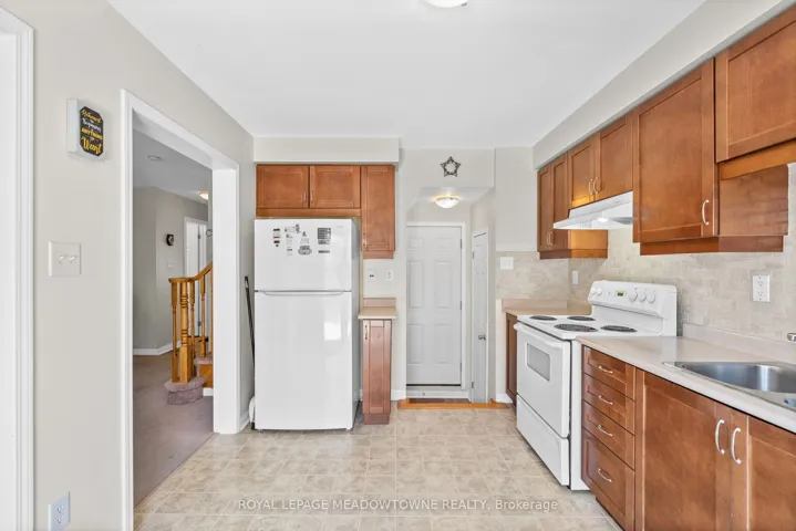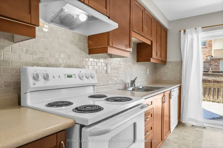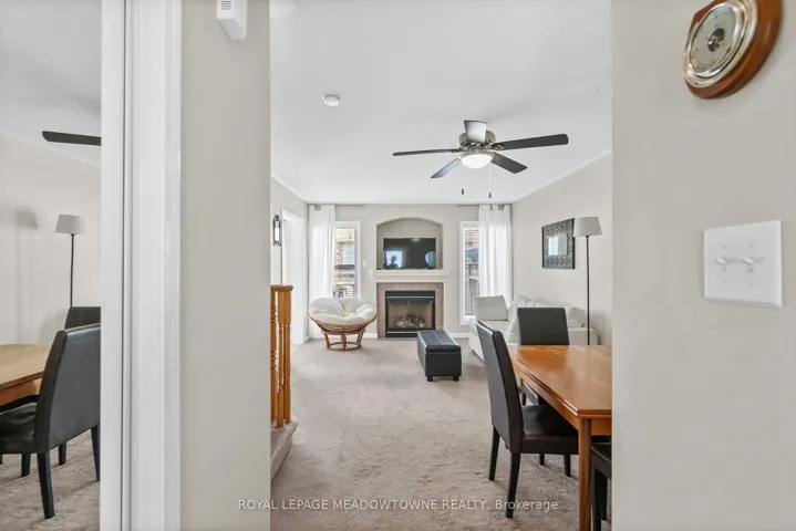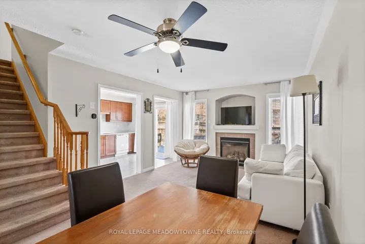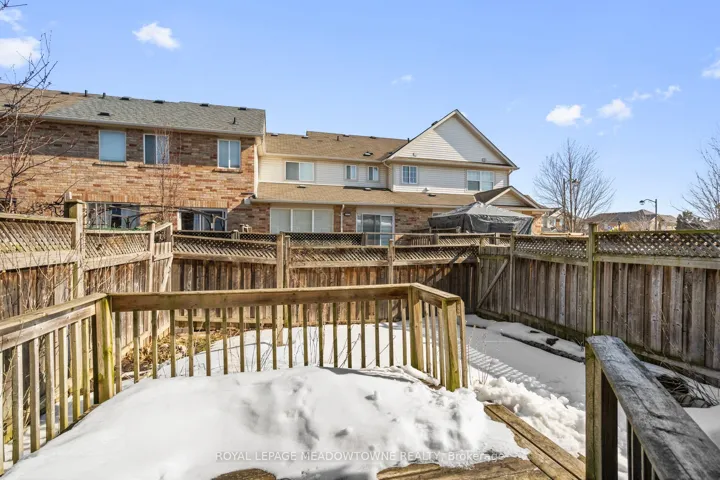 +"PublicRemarks": "Mattamy Brannan model offering nearly 1,400 sq ft of finished living space including a finished basement. Freehold home with no condo fees. Open concept main level with gas fireplace and kitchen backsplash. Three bedrooms and full bathroom on the upper level. Finished basement provides additional living space for family room, office, or gym. Private fenced backyard with wood deck and perennial gardens. Covered and recessed front porch. Well-loved home on a quiet, low-traffic street with walking trail at the end. Short walk to Metro, Fresh Co, Starbucks, Tim Hortons, Shoppers Drug Mart and dozens of restaurants. Elementary school approximately 8 minute walk away. Affordable entry into the Milton market."