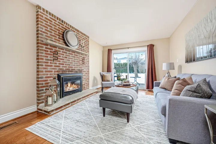 +"PublicRemarks": "Welcome to this well maintained 4 bedroom backsplit offering a functional multi level layout and a spacious fully fenced backyard. Interlocking steps lead to a stone front landing and single car garage with convenient access to the yard. Inside, the front foyer connects to the living room through French doors, creating a defined yet inviting transition. The bright living room features a bay window with built in seating bench and crown moulding, and flows seamlessly into the dining room for comfortable everyday living and entertaining. Just beyond the dining room are the stairs leading to the upper level. Straight ahead from the foyer, the kitchen offers GE white appliances, ceramic tile flooring and a window overlooking the backyard. From the kitchen, a short set of stairs leads down to the lower ground level. This level features a family room with hardwood flooring and a gas fireplace with exposed brick surround and stone hearth. Sliding glass doors provide walkout access to the interlocking patio and large fully fenced backyard, and a side door offers additional outdoor access. A fourth bedroom and 3 piece bath with walk in shower complete this level. Stairs from here continue down to the basement. Upstairs you will find three bedrooms and a 3 piece family bath with a tub shower combo. The basement level includes a rec room with wood paneling walls, above grade windows, closet space and a laundry area with access to an oversized crawl space. A solid family home with flexible living space across multiple levels. Located just steps from Centennial Middle School, a short ride to shopping with everything you could need nearby. Easy access to commuter routes. 7 mins to Georgetown GO Station."