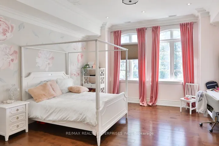 +"PublicRemarks": "Luxurious 4 Yr new, over 6100 SF total living area (4218 above grade). All 5 bedrooms upstairs have ensuite bath and walk-in closet. 6th bedroom / in-law suite on main floor also has ensuite bath and closet. Laundry room upstairs. Newly finished, city-approved, second dwelling 2 bedroom basement apartment. Additional rec room and home theater room in basement for owner's use. Tons of upgrades including 10 feet ceiling on main floor and primary bedroom upstairs. 9 feet ceiling in the rest of the upstairs area. 9 feet ceiling in basement. Brand new high-end kitchen with premium white cabinets, 10 feet wide island, 5 Jenn-Air Built-In appliances with quartz countertops and matching backsplash. Hardwood floors and 24x24 tiles on main floor. Waffle ceiling in family room. Wainscotting, crown molding, high baseboards, metal pickets, in-ground Wi-Fi-controlled sprinkler system in front and backyard, garden shed, and landscaped stone in front, side, and backyard. 4K CCTV Camera system. Exterior pot lights, safety and security film on all windows and doors on main floor and basement (helps provide a barrier to breaking-and-entering). Shears, curtains, and blackout blinds. Upgraded light fixtures. Rough-in for electric car charger. Rough-in for central vac. New proposed park under construction across the street. Planned to include junior/senior playgrounds, double tennis court with pickleball line overlay, multi-use lawn, native meadow and tree plantings forming an urban canopy walk, and shade structure. Walk to JK-8 public and Catholic schools. Walking trails. Minutes to highway 427 and new plaza."