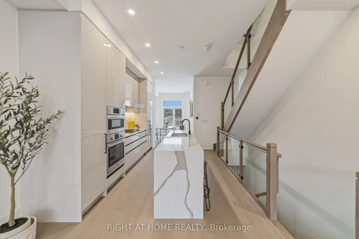 +"PublicRemarks": "Stunning townhome located in the Brightwater Waterfront Community features a private walk-up and overlooks a large green space, offering enhanced privacy with no direct-facing neighbors. This thoughtfully designed residence showcases 10-ft ceilings on the main level and 9-ft ceilings on the second and third floors, oversized windows, and engineered hardwood flooring throughout, creating a bright and airy living environment. Gourmet kitchen combines style and functionality with premium integrated appliances, including a paneled fridge and dishwasher, a built-in wall oven, and a 5-burner gas cooktop. Quartz countertops with matching backsplash and a striking waterfall island anchor the space. Open-concept living and dining area transitions seamlessly to a spacious outdoor deck and expansive private terrace, perfect for entertaining or everyday enjoyment. Second floor offers two generously sized bedrooms, including one with its own ensuite, a full 4-piece main bath, convenient second-floor laundry. An additional den provides flexibility as a reading room or extra living space. Third floor offers a tranquil primary suite complete with a spa-inspired ensuite. A dedicated home office that opens directly onto a rooftop terrace, ideal space for working from home and enjoying quiet outdoor moments. 3 vehicles via a 2-car tandem garage plus driveway space. An opportunity to be part of the growing Brightwater Port Credit Waterfront Community, a multi-year master-planned neighbourhood featuring acres of open green space, multiple parks, pedestrian-friendly streets, and convenient on-site retail. Residents enjoy an exceptional lakeside lifestyle with walking distance to vibrant downtown Port Credit, waterfront trails, cafés, restaurants, Farm Boy, LCBO, boutique shops, and a resident shuttle to Port Credit GO Station for easy commuting."