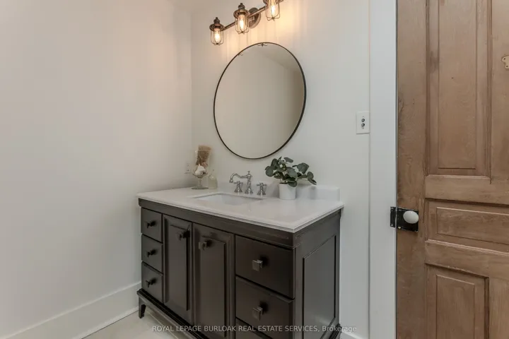 +"PublicRemarks": "Discover the perfect blend of rural charm and refined luxury on an exceptional property that offers the tranquility of country living while remaining just mins from Burlington's everyday amenities, schools, shopping, and hwys. Set behind automated wrought iron gates is one of the most historic homes in the area originally from 1875. Inside, rustic character meets modern comfort. A welcoming foyer with heated floors sets the tone, while beautiful 1875 wood floors (2020), 8" baseboards, and designer lighting add warmth throughout. The heart of the home is the kitchen featuring concrete countertops, custom cabinetry, SS appliances, wood beam accents, tile backsplash, and a breakfast bar, seamlessly connecting to a bright breakfast area with a bay window. Multiple gathering spaces offer flexibility for living and entertaining, including a family room with stone-surround fireplace, formal dining room, and a living room with wood paneling, French doors, and a bay window. A main-floor bedroom and beautifully renovated 3pc bath with heated floors and glass shower provide ideal space for guests or multigenerational living. Upstairs, the expansive primary retreat impresses with vaulted 12' ceilings, automated blinds, private balcony, and a custom California Closets walk-in. The spa-inspired ensuite features a freestanding tub, and glass walk-in shower. 2 additional spacious bedrooms and a stylish 4pc bath complete the level. The heated garage is a dream entertainment space, and offers polished concrete floors, automated blinds, and an EV charger rough-in. The partially renovated lower level provides excellent storage, laundry with new machines, a workbench, and walkout cellar doors. Outdoors, the fully fenced backyard is a true private retreat with a professionally landscaped stone patio, flagstone pathways, inground pool, hot tub, fire pit, and large shed-perfect for family gatherings, summer entertaining, and peaceful evenings under the stars."