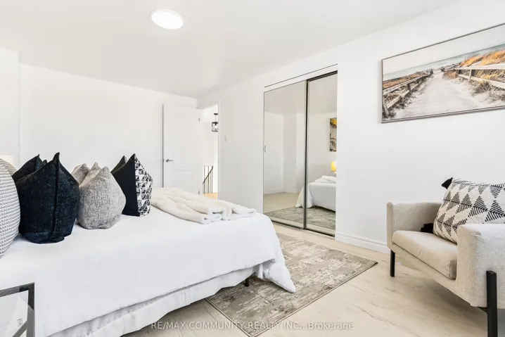 +"PublicRemarks": "Fully renovated large detached brick back split home featuring high-end finishes and strong attention to detail. The home offers a state-of-the-art eat-in kitchen with quartz countertops, stainless steel appliances, and under-cabinet lighting. The home includes a formal dining room, spacious living room, and a separate family room featuring a wood-burning fireplace. Waterproof flooring runs throughout the house. All popcorn ceilings have been removed and replaced with smooth skim-coated ceilings. All switches and outlets have been replaced. Modern light fixtures are installed throughout the home. A new Wi-Fi garage door adds convenience and security. The upper level offers three bedrooms and a three-piece washroom with a standing glass shower and modern vanity. The home is freshly painted throughout. The finished basement includes an additional bedroom and living space, ideal for guests or extended family. The exterior features a patio backyard with a freshly painted fence for a clean, modern look, concrete two-car parking, a landscaped front yard, and a spacious lot. Ideally located close to public transit, schools, and Hwy 407."