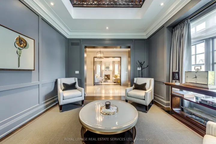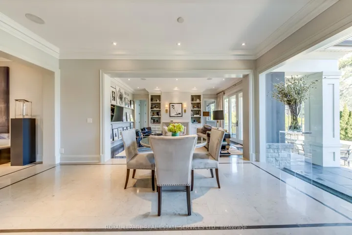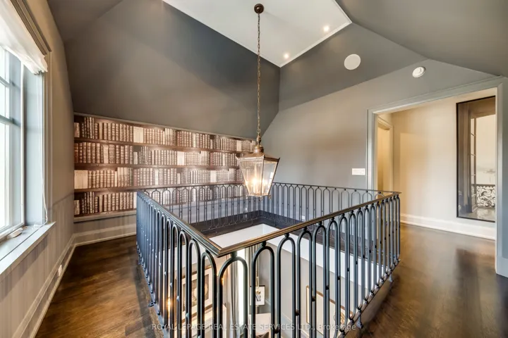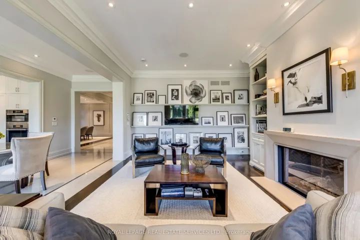 +"PublicRemarks": "Elegant Custom Estate in Prestigious Southeast Oakville. Experience refined living in this stunning custom residence offering over 4,800 sq ft above grade and more than 7,300 sq ft of total living space. Thoughtfully designed by Michael Pettes and expertly built by PCM, this home showcases timeless architecture and exceptional craftsmanship throughout. The main level exudes European sophistication, featuring plaster crown mouldings, custom drapery, designer wall sconces, and intricate architectural detailing. A dramatic main floor library impresses with soaring ceilings, a gas fireplace, and a striking wrought-iron catwalk above. The grand formal dining room comfortably accommodates large gatherings, perfect for elegant entertaining. At the heart of the home is a Downsview chef's kitchen complete with a large centre island, servery, and seamless flow into the breakfast area and spacious family room. The upper level offers an outstanding layout highlighted by a wide skylit hallway-ideal for displaying art or family memories. All four generously sized bedrooms feature private ensuites and ample closets. The luxurious primary retreat boasts a cathedral ceiling, dressing room, and spa-inspired ensuite with a built-in bookshelf beside the soaker tub. The fully finished lower level is designed for both relaxation and entertaining, featuring a fifth bedroom, full bath, expansive recreation room with wet bar, and a stone-accent wine cellar. A large laundry room with extensive counter space and a wide winding walk-up to the backyard adds convenience. Additional highlights include a main floor den, upper-level study, heated interlock driveway, oversized garage with car lift capability, covered rear porch, and dual furnaces and A/C units. Ideally located within walking distance to top-rated schools and just minutes to shopping, amenities, and major highways, this exceptional home offers luxury, functionality, and an unbeatable Southeast Oakville lifestyle."