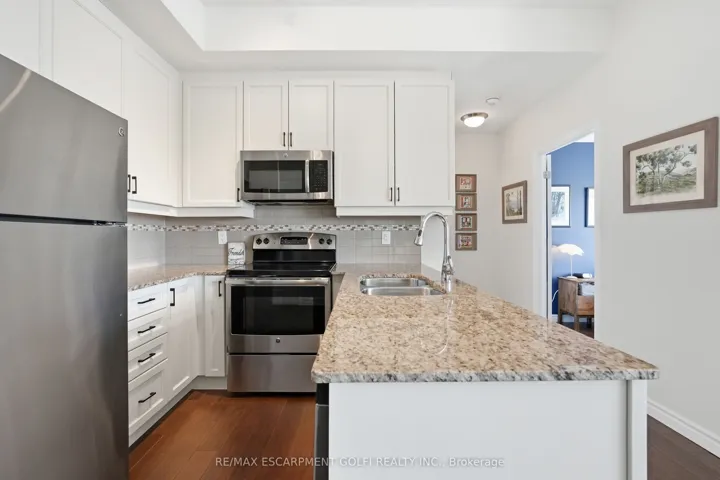 +"PublicRemarks": "Welcome to this charming boutique condo in desirable Aldershot South - walking distance to La Salle Park and Marina, with quick access to the GO Station, major highways, and Mapleview Shopping Centre! Offering over 700 sq. ft., this bright and well-appointed 2-bedroom, 1-bathroom unit features a west-facing balcony perfect for enjoying beautiful sunsets. The inviting living room is filled with natural light, creating a warm and comfortable space for relaxing or entertaining, with direct access to the private balcony for year-round outdoor enjoyment. The kitchen features a functional peninsula layout with granite countertops, stainless steel appliances, and ample cabinetry for storage. The primary bedroom offers scenic western exposure and a walk-in closet, while the second bedroom provides a versatile space ideal for guests, a home office, or additional living needs. Highlights include hardwood flooring throughout, double sliding doors for enhanced sound insulation, and an energy-efficient geothermal building system designed to help keep utility costs low. The unit also features a neutral colour palette, a spacious 4-piece bathroom, and convenient in-suite laundry. Included with the unit is exclusive use of one underground parking space and a storage locker for additional storage."
