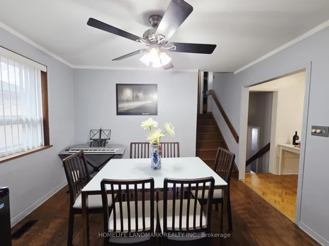 +"PublicRemarks": "Beautifully maintained detached home! Features a spacious living room with combined diningarea and hardwood floors. Bright eat-in kitchen with breakfast area. Four generously sized bedrooms. Upgraded electrical panel and renovated bathrooms. Enjoy a huge backyard and aprivate driveway that comfortably parks up to 4 cars. Shows very well! Conveniently locatedwithin walking distance to schools, TTC, and parks. Priced to sell!"