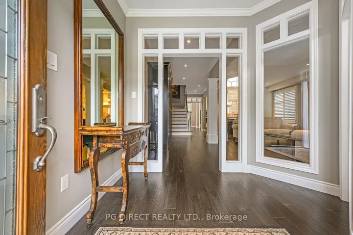 +"PublicRemarks": "Visit REALTOR website for additional information. This exceptional ravine-lot home offers over 4,300 sq. ft. of upgraded living space, blending architectural elegance with modern comfort. Features include hand-scraped hardwood floors, California shutters, crown moulding, custom transoms, and pot lighting throughout.The chef-inspired kitchen boasts custom cabinetry, a 10-ft island with gas cooktop and prep sink, premium Miele appliances, and a built-in Gaggenau refrigerator. A sun-filled breakfast area opens to an oversized three-tier composite deck with integrated lighting and peaceful ravine views.The main floor offers a library with built-ins and gas fireplace, private office, powder room, and designer laundry. The finished double garage features epoxy floors and custom cabinetry.Upstairs, the primary suite includes a spa-inspired ensuite with heated marble floors. A fourth bedroom was converted to an executive walk-in closet but can easily be restored. Each additional bedroom has its own ensuite. The finished lower level includes a bedroom with fireplace, second kitchen, full bath, and large storage room-ideal for an in-law suite. Metal roof, paving stone driveway, owned water softener, and water filtration system complete this remarkable home."