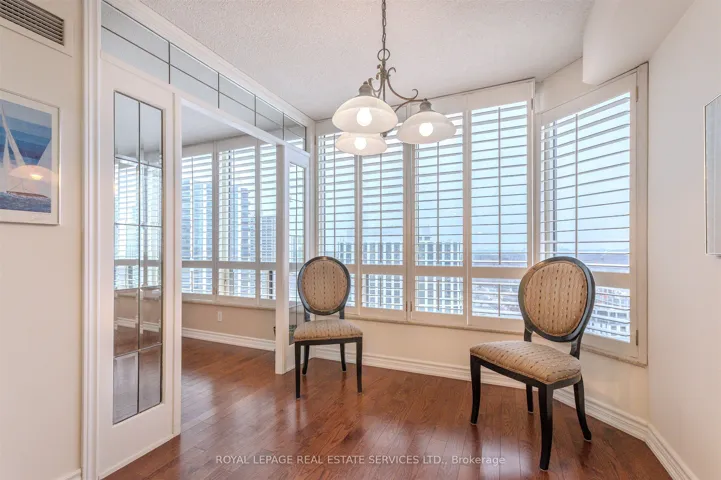 +"PublicRemarks": "Step into a residence that truly sparkles. This super spacious 1350 square foot 2-bedroom plus den suite at the sought after Barclay Terrace offers an immaculate living experience - neat as a pin and bathed in bright natural light. Modern elegance meets functional design with engineered hardwood flooring flowing through the suite. The heart of the home is an updated kitchen featuring polished granite countertops and a ceramic/glass tile backsplash, sleek stainless steel appliances and a dedicated breakfast area for casual mornings. The primary living spaces are complemented by a versatile den and an updated 4-piece main bathroom, complete with a separate walk-in shower and a deep soaker tub. A stylish powder room with a pedestal sink serves guests, while the clear south west views provide a serene backdrop to your daily life. For ultimate convenience there is ensuite laundry, an ensuite locker/storage room and an included parking space. Your all-inclusive maintenance fees cover everything - even high-speed internet and cable TV! Experience a "vacation at home" lifestyle with incredible resort-style amenities including a 24-hour concierge, indoor pool, jacuzzi, fitness center, tennis and squash court, billiards, a woodworking shop, and a party room. Perfectly situated for an active lifestyle, and with a vibrant community atmosphere, you are just steps away from the charm of Islington Village. Enjoy easy access to local shops, cafes, and pubs, or take a short stroll to the Islington Golf Course and the seasonal farmer's market at Montgomery's Inn. Commuting is effortless with the Islington Subway and GO Station nearby, connecting you to the rest of the GTA in minutes. Suite 2504 isn't just a condo; it's a meticulously kept sanctuary in a premier Etobicoke community."