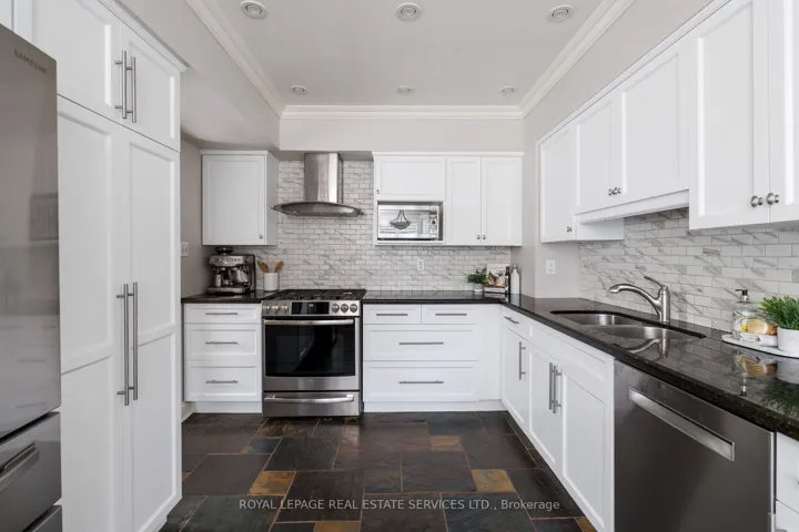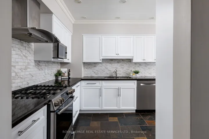 +"PublicRemarks": "Live the coveted waterfront lifestyle in Bronte, one of Oakville's most desirable neighbourhoods. Stroll to Bronte Heritage Waterfront Park, Bronte Harbour, and Fisherman's Wharf along the shores of Lake Ontario, with vibrant Bronte Village offering cafés, restaurants, boutiques, and everyday conveniences, including Farm Boy. Commuters enjoy quick access to highways and the Bronte GO Station. This beautifully updated freehold townhome in Schooner's Reach offers approximately 2,362 sq. ft. with 3 bedrooms and 2.5 bathrooms, finished top to bottom and designed for entertaining. Spacious living and dining rooms with hardwood floors, a ledge stone fireplace and a walkout to a private, oversized terrace with glass railings and tranquil views of green space, mature trees and Schooner's Reach exclusive-use tennis courts. The upgraded eat-in kitchen features extensive white cabinetry with glass display uppers, granite counters, stainless steel appliances and a large bay window in the breakfast area. The second level includes a family room with French doors and a second fireplace, two bedrooms, an updated 3-piece bath and a laundry room. Privacy awaits in the secluded top-floor primary retreat offering a private balcony and a luxurious 5-piece ensuite with a freestanding soaker tub and frameless glass shower. The lower level provides an office and an inside entry to the double garage. Elegant finishes include California shutters, crown mouldings, hardwood floors, upgraded tile, two wood-burning fireplaces and two walkouts. Major updates include kitchen cabinet refacing and main-level paint (2026), refinished hardwood (2025), furnace and A/C (2024), ensuite vanity (2023) and roof shingles (2019)."