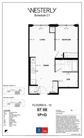 +"PublicRemarks": "Suite 1107 at Tridel's Westerly I Condos is a bright and modern one-bedroom plus den residence featuring a smart, efficient layout. Filled with natural light, the open-concept living and dining area is both functional and inviting, while the bedroom provides a comfortable retreat with ample storage. Thoughtfully designed with contemporary finishes throughout, this suite is perfect for those seeking stylish urban living in a well-connected community."