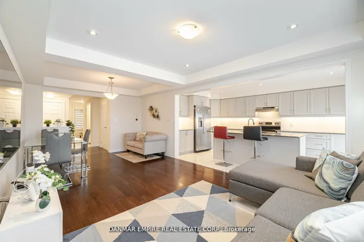 +"PublicRemarks": "Welcome to this modern, open-concept 3-bedroom, 3-bathroom freehold townhome located in the highly desirable Preserve community.This home is ideal for families seeking both comfort and convenience.Situated within a top-ranking school district, the home features stylish flooring throughout and a spacious layout perfect for everyday living and entertaining. The open-concept kitchen is a chef's delight, complete with a large center island and plenty of natural light.The main floor features a generously sized primary bedroom with a private 4-piece ensuite, providing both functionality and comfort.Enjoy a prime location just minutes from shopping, parks, public transit, the Sixteen Mile Sports Complex, community centre, scenic walking trails, and convenient access to Highways 407 and 403.Extras: Garage and driveway parking are shared with the commercial tenant located on the ground floor."