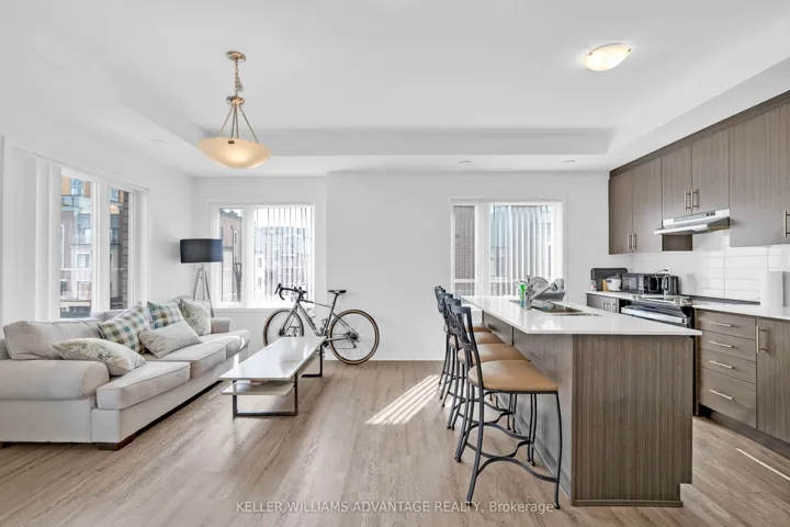 +"PublicRemarks": "Welcome to 40 William Jackson Way at Lake & Towns, a modern South Etobicoke condo townhome built in 2023 that perfectly blends functional interior space with exceptional outdoor living. As a premium 1378 square foot Wolfe End model, this home offers a prized corner exposure, meaning you share walls with only two neighbours for enhanced privacy and natural light. The showpiece is the expansive private roof terrace , a true extension of the home complete with an included gas line hookup, offering ample room for dining, lounging, and entertaining. Inside, the bright open-concept main level features tall 9-foot ceilings, large windows, and a seamless flow between the living and dining areas. The contemporary kitchen is finished with a dedicated pantry, quartz countertops, stainless steel appliances, and clean modern cabinetry. The thoughtfully designed layout includes three spacious bedrooms and 2.5 bathrooms, providing incredible flexibility. The dedicated third level features a true master bedroom complete with a walk-in closet and a private ensuite bathroom, alongside a second bedroom that enjoys its own private terrace, an additional full bathroom, and convenient laundry. A third bedroom and a powder room are located on the second level. Ideally located at Lakeshore & Kipling, you are steps to parks, shops, cafes, restaurants, and Humber College Lakeshore Campus, with quick access to the Gardiner, Hwy 427, Mimico GO (approx. 6 minutes), and Pearson Airport (about 12 minutes). With an included secure parking unit and ample visitor parking, this is turnkey urban living in one of South Etobicoke's most connected communities."
