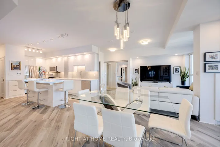 +"PublicRemarks": "VIEW: This fully renovated 1,105 sq. ft. contemporary residence offers panoramic, unobstructed views of the CN Tower and Lake Ontario, framed by floor-to-ceiling windows and a 225 sq. ft. wrap-around terrace. Southeast exposure delivers stunning sunrises and exceptional natural light throughout the day. KITCHEN: Designed for modern living and entertaining, the custom kitchen features over 30 high-gloss cabinets, a custom tinted glass backsplash, and a striking 8-foot island with an LED-lit glass countertop. BATHS: Both bathrooms have been fully renovated with high-end finishes for a cohesive, move-in-ready experience. PRIMARY SUITE (INTEGRATED STORAGE - NO EXTRA FURNITURE REQUIRED): The primary bedroom is intelligently designed with built-in floor-to-ceiling dual wardrobes with drawers and an integrated queen bed with hidden storage (hydraulic lift), eliminating the need for bulky dressers. The bed platform and wardrobes are included-just bring your Queen mattress. SECOND BEDROOM/HOME OFFICE: Comfortably accommodates a queen-size bed and dresser, featuring an oversized closet and direct access to the balcony. SMART TECH: Fully integrated smart home features with voice-controlled lighting throughout the main living areas let you set the ambiance effortlessly. PARKING & STORAGE: Includes TWO premium parking spaces and a large storage locker, a rare offering in this location. AMENITIES: Resort-style amenities include a fitness centre, indoor/outdoor pools, pickleball, basketball and squash courts, and 24-hour concierge. LIFESTYLE: Located at Mississauga's most iconic address, just steps to Square One, dining, transit, and the upcoming LRT. KEY UPGRADES: Integrated primary suite storage, 8-foot island with LED-lit glass countertop, smart lighting, two parking spaces. Don't miss out on checking the building website: https://60absolute.ca/"