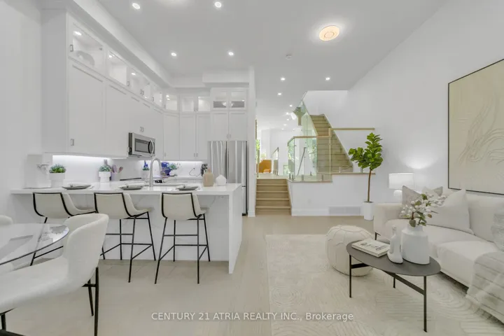 +"PublicRemarks": "This stunning elevated 3-bedroom home is perfect for design-conscious buyers who value style, space, and natural light. Featuring an open-concept layout with a 14-ft ceiling, Hardwood flooring, an upper skylight, and Modern Glass railing, the living space feels bright and airy, perfect for entertaining. Gourmet Kitchen with full-size cabinetry, second-floor laundry, cold cellar, and a thoughtfully designed flow complement the elevated living experience. This designed multi-level home has an exceptional separation of living area, ideal for professionals, creative for those working from home, couples, or active families who appreciate elevated living and a home with personality. Located close to the Garden Express, close to downtown Toronto, a short walk to the lake, schools, library, and amenities, this is a rare opportunity to own a home that combines luxury, convenience and Timeless design Pictures on the MLS reflect when the house was staged. The house is now move-in ready."