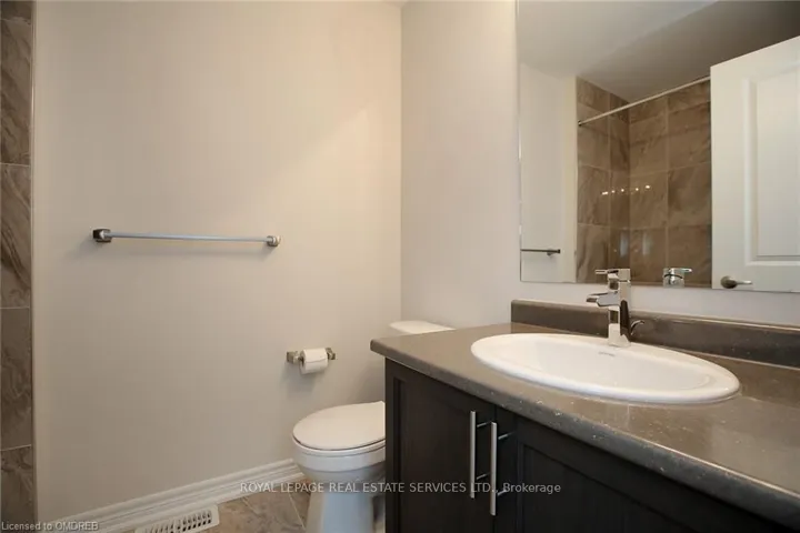 +"PublicRemarks": "Low maintenance home in Upscale Bronte Creek. Bright Horizon-built townhome with 2 bedrooms, 1.5 baths & well-planned luxury living space. Numerous upgrades including dark hardwood floors, impressive oak staircase, 9 ceilings, designer tiles & LED pot lights. Huge foyer with inside entry to the garage & there is a spacious open-concept den with a large window & hardwood floor, making it easy to work from home. You'll love the beautiful kitchen with floor-to-ceiling dark-stained cabinetry, large pot drawers, stone counters, stainless steel appliances, gorgeous floor tiles & a large peninsula/island with a breakfast bar, perfect for a quick meal or mingling with guests over appetizers. Entertain or relax with family in the light-filled open-concept family room & dining room with hardwood floors, pot lights & a walkout to the balcony. Set up a reading room or an office area in the loft at the top of the stairs on the third level. Your bright primary suite features a walk-in closet & neutral Berber-style broadloom. A lavish 4-piece main bathroom offers a soaker tub/shower combination, dark cabinetry & gorgeous upgraded tiles. Also, on this level are the second bedroom & a convenient laundry area. Fabulous community, rich with preserved forest lands, trails & parks. Close to schools, highways, GO Train & about a 5-minute drive to the hospital. No pets, no smokers. Credit check and references."