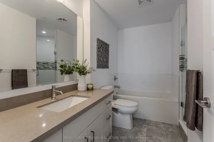 +"PublicRemarks": "Experience elevated downtown living in one of Burlington's most sought-after residences. Set within the prestigious Berkeley Condos, this hotel-inspired suite offers a refined, low-maintenance lifestyle in the heart of the city-just steps from the waterfront, Spencer Smith Park,boutique shopping, top-rated restaurants, cafés, and vibrant year-round events. Whether it's morning walks along the lake or evenings outdowntown, this location delivers the ultimate lifestyle experience. Inside, 9' ceilings and rich hardwood flooring create a seamless, upscale feelt hroughout. The modern eat-in kitchen is designed to impress, featuring granite countertops, a tile backsplash, stainless steel appliances with range hood, and a spacious island with breakfast bar-perfect for casual dining or entertaining. The bright living room is anchored by an oversized window and walkout to a private balcony, where you can unwind with beautiful lake views as your backdrop. The primary bedroom offers a peaceful retreat, complete with a 4-piece ensuite featuring a walk-in glass shower and separate tub. An additional bedroom with stylish barn doors provides an ideal space for guests or a home office, complemented by a sleek 3-piece main bath with walk-in shower. This unit also includes one parking space, a super-sized locker conveniently located next to the parking space, plus an additional locker on the same floor-offering exceptional storage rarely found in condo living. Residents of this upscale building enjoy access to premium amenities including a 24-hourconcierge, fully equipped fitness centre, elegant party and games room, guest suites for overnight visitors, and a stunning rooftop terrace with breathtaking panoramic views of the lake and city skyline. An exceptional opportunity for professionals, downsizers, or anyone seeking a sophisticated, walkable lifestyle in one of Burlington's most vibrant and connected"