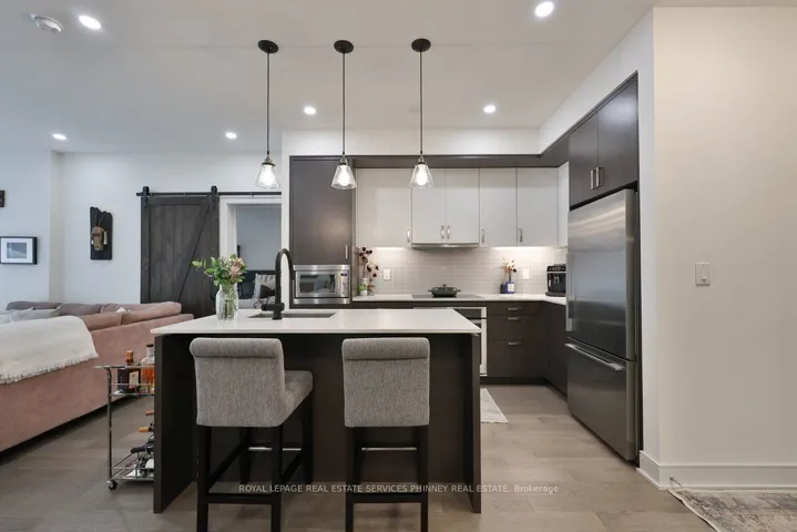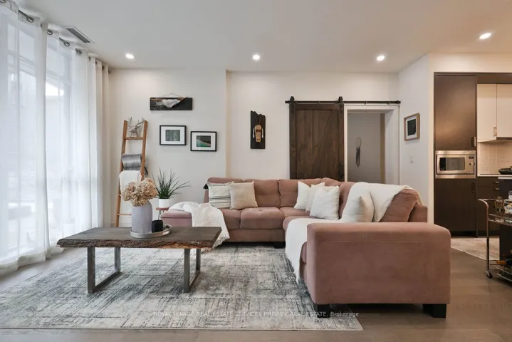 +"PublicRemarks": "A unique and rare opportunity at the iconic and desirable Craftsman in Clarkson offering affordable luxury and ultimate convenience. Concierge, 24-hr security, a gym, yoga studio, rooftop w/bbqs, lush manicured grounds, and plenty of socials. These are just a few of many privileges that the residents of The Craftsman enjoy. This "Meadow Wood" suite offers a sunny West exposure, a functional 960 Sq Ft layout with 2-bedrooms, 2-full washrooms and a showstopper 817 Sq Ft Private Terrace in the secure and lush West Courtyard. Great for someone with a green thumb and/or pet. The suite features 9' ceilings with pot lights, tasteful 5" engineered hardwood flooring, an eat-in kitchen with Large Island and sink, full-sized Fisher & Paykel (31" Fridge), Whirlpool and Panasonic appliances, backsplash and tasteful cabinetry. The primary bedroom features a large walk-in closet, stunning 3-pc ensuite bathroom and a walk-out to the terrace. Positioned on level 1, suite 155 offers simplicity and ease for coming and going. Well-suited for those seeking convenience, comfort, security and a connection to the outdoors. This home is something truly special."