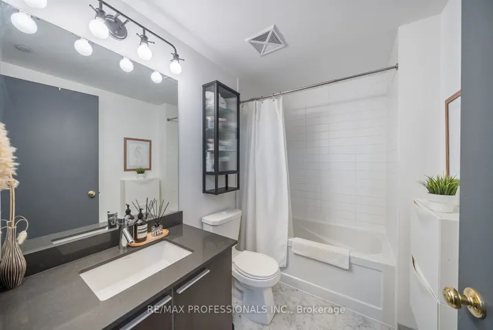 +"PublicRemarks": "Welcome home to refined waterfront living in the highly sought-after community of Humber Bay Shores. Just moments from the lake, this beautifully appointed one-bedroom condo offers a perfect balance of modern design, comfort, and lifestyle. Sun-filled and thoughtfully upgraded, the open-concept layout is ideal for both everyday living and entertaining. The contemporary kitchen features stainless steel appliances, a glass tile backsplash, and a striking quartz waterfall island that anchors the space with style and function. Upgraded lighting and a custom glass enclosure discreetly concealing the washer and dryer add a sophisticated, design-forward touch. The living area flows seamlessly to a spacious private balcony, creating an inviting extension of the home with impressive views and an ideal setting for morning coffee or evening relaxation. The bedroom is generously sized with ample closet space, while the modern bathroom is finished with clean lines and sleek fixtures, offering a spa-inspired feel.Residents enjoy access to an exceptional collection of resort-style amenities, including a fully equipped fitness centre, squash court, sauna, outdoor swimming pool with cabanas, rooftop terrace, party room, business centre, guest suites, and 24-hour concierge service. Steps to waterfront trails, parks, shops, dining, and transit, with plenty of visitor parking available, this home offers effortless lakeside living in one of Toronto's most vibrant communities."