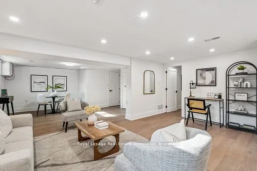 +"PublicRemarks": "Beautifully renovated solid brick bungalow in the sought after Riverview Heights area of quaint Streetsville. Hardwood floors throughout the main floor and LVP throughout the basement. Large windows throughout the main floor with a gorgeous bay window in the living room that allow natural light to fill the home. Gorgeous kitchen with a massive peninsula, high end S/S appliances, natural gas stove and quartz counters that will please any cook in the family. The open plan main living area is fantastic for entertaining. Rare double car garage and double wide driveway w/ separate entrance to the basement that can allow for a secondary unit to be completed. Bright basement with tons of space, a separate bedroom with a huge walk-in closet. Nice corner lot with a fully fenced in side yard. This is a perfect home for a family and for transitional living age in place. Conveniently located close to schools, downtown Streetsville's shopping and dining & GO station."