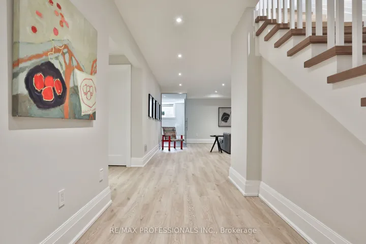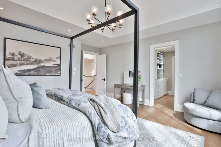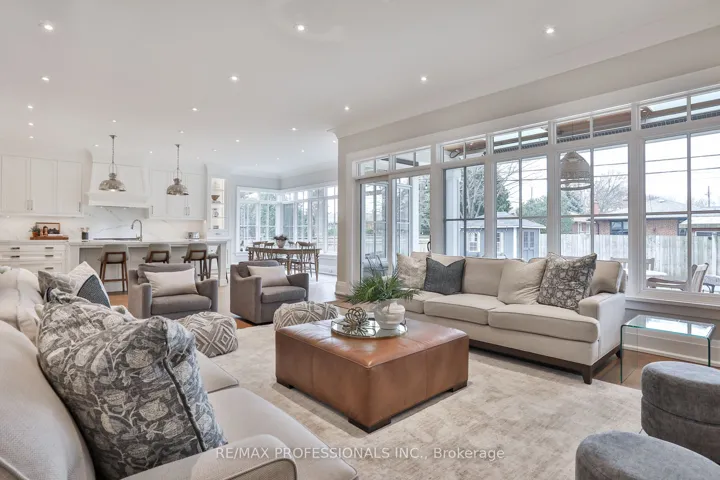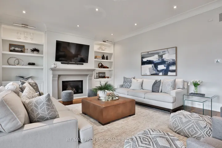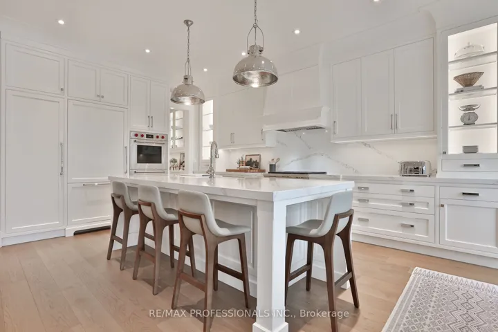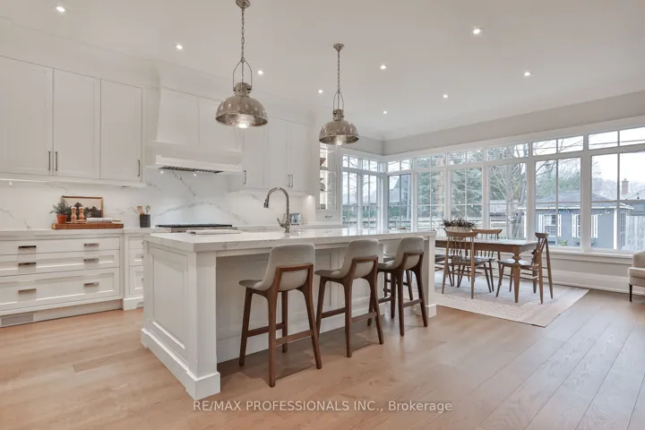 +"PublicRemarks": "Welcome to this exceptional residence in coveted Norseman Heights, set on a premium 50 ft wide lot and offering approx 3,500 sq ft of beautifully finished above-grade living space. Refined design, architectural scale, and exceptional craftsmanship define this elegant family home. A grand two-storey centre hall foyer, crowned by a skylight, creates a striking first impression filled with natural light. Rich custom hardwood floors run throughout, complementing the home's timeless yet functional layout. Designed for elevated everyday living and seamless entertaining, the main level features a formal dining room with pocket door access to a well-appointed butler's pantry. The expansive great room anchors the home, where the living, kitchen, and breakfast areas connect effortlessly. The custom chef's kitchen showcases a framed wood design, oversized island, quartz surfaces, and integrated appliances, enhanced by extensive millwork and curated finishes. The living room offers warmth and sophistication with a gas fireplace, built-in bookcases, and a walk-out to a heated covered patio overlooking the professionally landscaped private backyard, ideal for year-round enjoyment. Upstairs, the primary suite is a true retreat with vaulted ceilings, a walk-through dressing area with custom organizers, and a spa-inspired five piece ensuite. Three additional bedrooms provide excellent accommodations, including one with a private ensuite and two connected by a Jack-and-Jill bath. An upper-level laundry room adds everyday ease. The finished lower level features heated floors, a large recreation area with rough-ins for a future wet bar, an additional bedroom, a versatile den or office, a three piece bath, and a glass-enclosed gym. Ideally located near top-rated schools, including ECI, ESA, and Bishop Allen, with a scenic ravine walk to Bloor Street, easy transit access, and close proximity to parks, shops, and the Kingsway village."