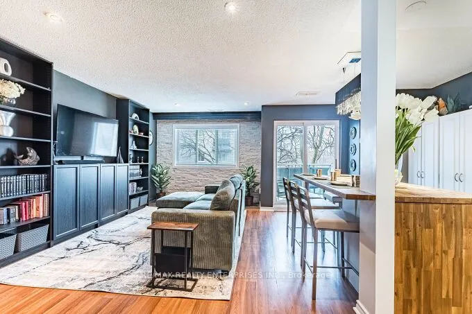 +"PublicRemarks": "Welcome to a superb entry level condo in south Mississauga. Stylish two storey condo in the heart of desirable Clarkson Village. Superb location surrounded by shopping, restaurants, banks, Ontario Raquet Club (ORC), steps to Clarkson GO with direct access to downtown, close to QEW, steps to Rattray Marsh. Walk-out to 2 balconies (one on each level) to treed park area with playground. Open concept main floor with island separating the functional kitchen and dining room with walk-out to balcony. Upstairs boasts a good sized master bedroom, second bedroom and den with walk-out to balcony (could be converted to 3rd bedroom). The upper level also has laundry room with washer, dryer and laundry tub. Locker room access is on the same level as the front door to the unit. Price includes fridge & dishwasher (approx. 2 years new), stove & microwave (approx. 8 years new), air conditioning (2025), island between kitchen and dining room, built-in shelving in living room. Just move in and enjoy!"
