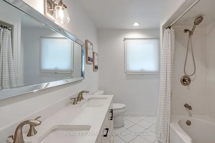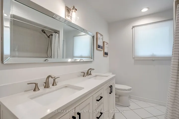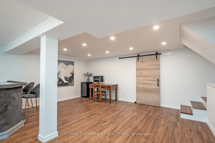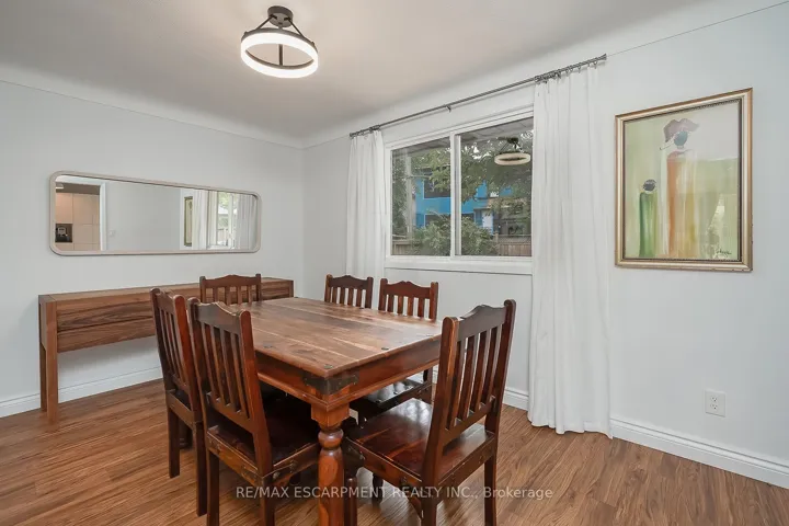 +"PublicRemarks": "Location location location! This stunning 4 level side split sits on a private pie-shaped lot on a quiet crescent in Roseland. This home has been beautifully updated/maintained throughout and features 3+1 bedrooms, 1.5 bathrooms and finished lower levels with in-law potential! The main floor boasts luxury vinyl plank flooring and plenty of natural light throughout. There is an over-sized living room, separate dining room and a beautifully updated kitchen. The kitchen features stainless steel appliances, airy white cabinetry, quartz counters, a tiled backsplash and a large patio door leading to the backyard oasis. The bedroom level has hardwood flooring throughout, 3 bedrooms and an updated 5-piece bath. The lower level has hardwood flooring, a 4th bedroom, 2-piece bathroom, large family room and a walk up to the backyard! The basement level has a sprawling rec room, laundry room and ample storage! The beautifully landscaped exterior includes a single car garage and fully fenced yard with a large wood deck, a gas BBQ line and plenty of privacy. This home sits in a quiet, family-friendly neighbourhood and is conveniently located close to top rated schools, parks, public transportation and all amenities."