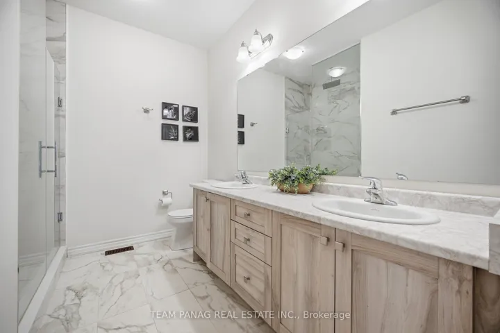 +"PublicRemarks": "PRIME LOCATION AND OPPORTUNITY! Welcome to this stunning east-facing detached residence with modern elevation, ideally situated at **54 Moorcroft Pl** in the highly sought-after **City Pointe Common** community of Brampton. This sun-filled home is bathed in natural light and offers approximately **4,200 sq. ft. of total living space**, featuring **4+3 bedrooms and 5bathrooms**.The main level boasts a functional **den/home office**, elegant **separate living and dining areas**, and a warm, inviting **family room with fireplace**-perfect for everyday living and entertaining. The **finished legal 3-bedroom basement** includes **separate laundry** and is currently **rented for $2,500/month**, offering excellent income potential. The recently upgraded **chef's kitchen** showcases **quartz countertops and backsplash**,premium **high-end stainless steel appliances**, and a **36" gas stove** backed by a **5-yearwarranty**. This home also features a **2-car garage with a wide driveway** for added convenience. Retreat to the **spacious primary suite**, complete with a sitting area, an oversized **walk-in closet**, and a luxurious **5-piece ensuite**. Enjoy **upgraded hardwood flooring and porcelain tiles throughout**, generously sized bedrooms with **walk-in closets**, and a **convenient second-floor laundry** with a **walk-in linen closet**.This exceptional family home is **move-in ready** and presents a rare opportunity to own in one of Brampton's most desirable locations!"