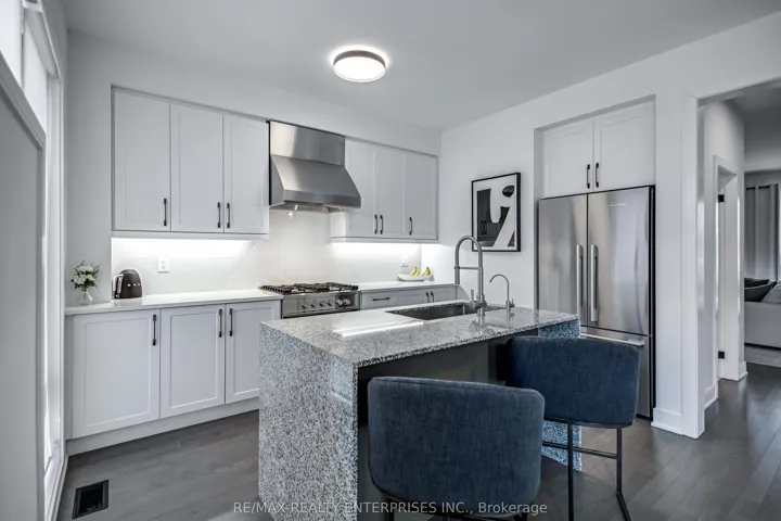 +"PublicRemarks": "This beautifully upgraded 3+1 bedroom home offers a seamless blend of modern design and refined, high-end finishes throughout. The gourmet kitchen is equipped with premium Fisher & Paykel appliances, featuring a commercial-grade hood fan and a striking waterfall island that serves as both a functional workspace and a sophisticated focal point. The main living areas showcase smooth ceilings and elegant engineered hardwood flooring, creating a cohesive and elevated feel. The three bedrooms offer plush carpeting for added comfort, while the additional lower-level bedroom provides flexibility for guests, a home office, or extended family living. Three well-appointed bathrooms are finished with granite countertops and upgraded fixtures. A custom iron staircase adds a distinctive architectural touch, complemented by matte black hardware throughout for a clean, contemporary look. Additional highlights include custom closet cabinetry, upgraded baseboards and trim, and energy-efficient LED lighting throughout. The home is complete with Samsung washer and dryer units and a basement with a cold cellar, offering added storage and versatility. A truly turn-key residence, thoughtfully designed with exceptional attention to detail."